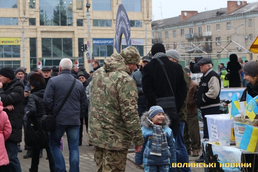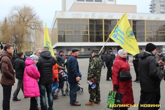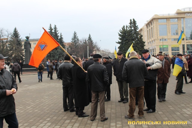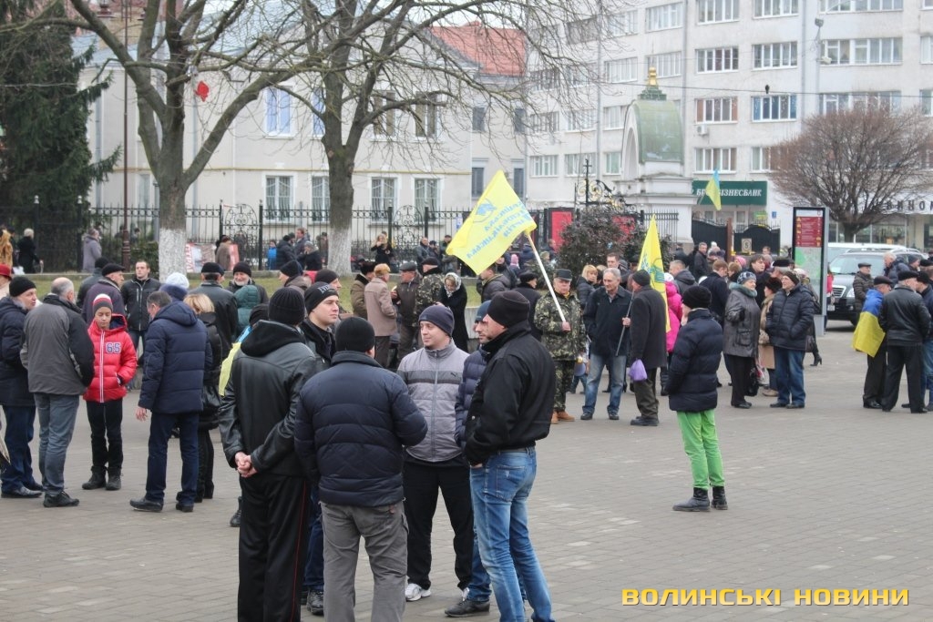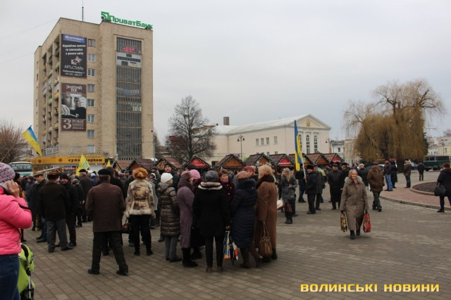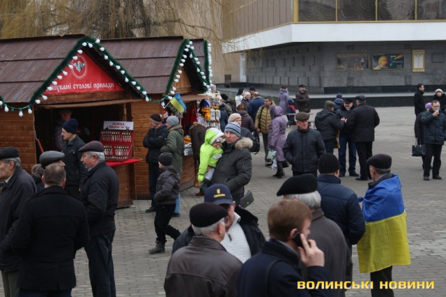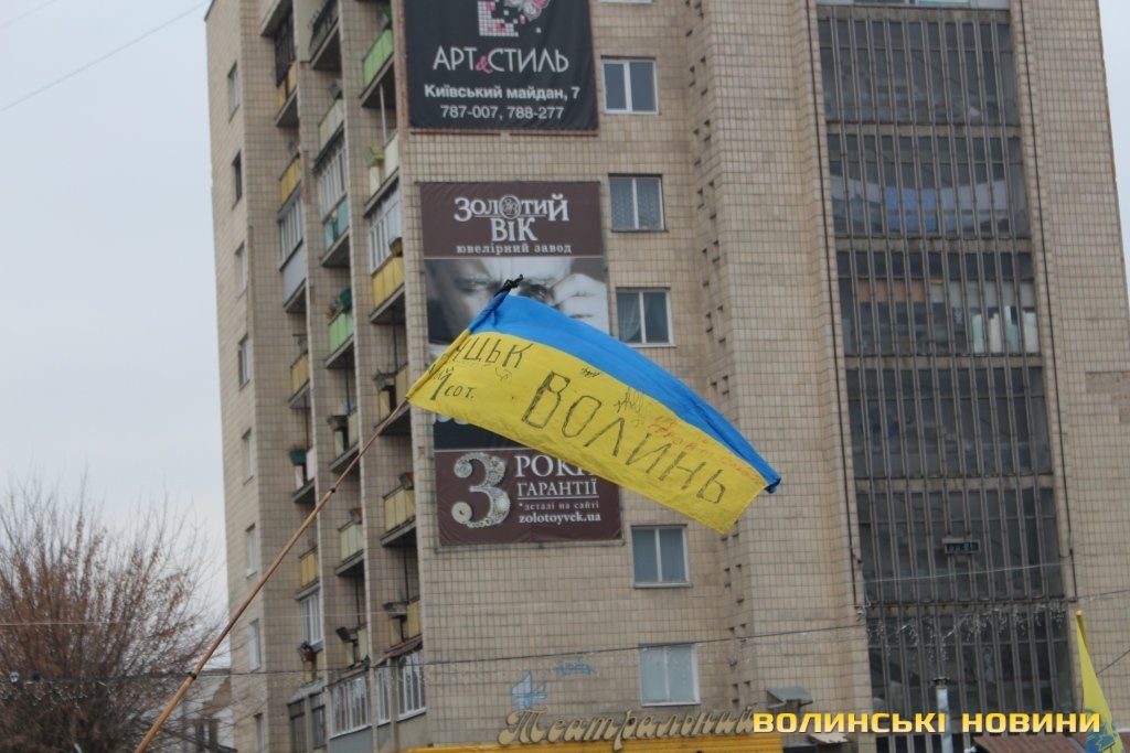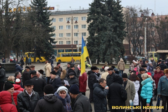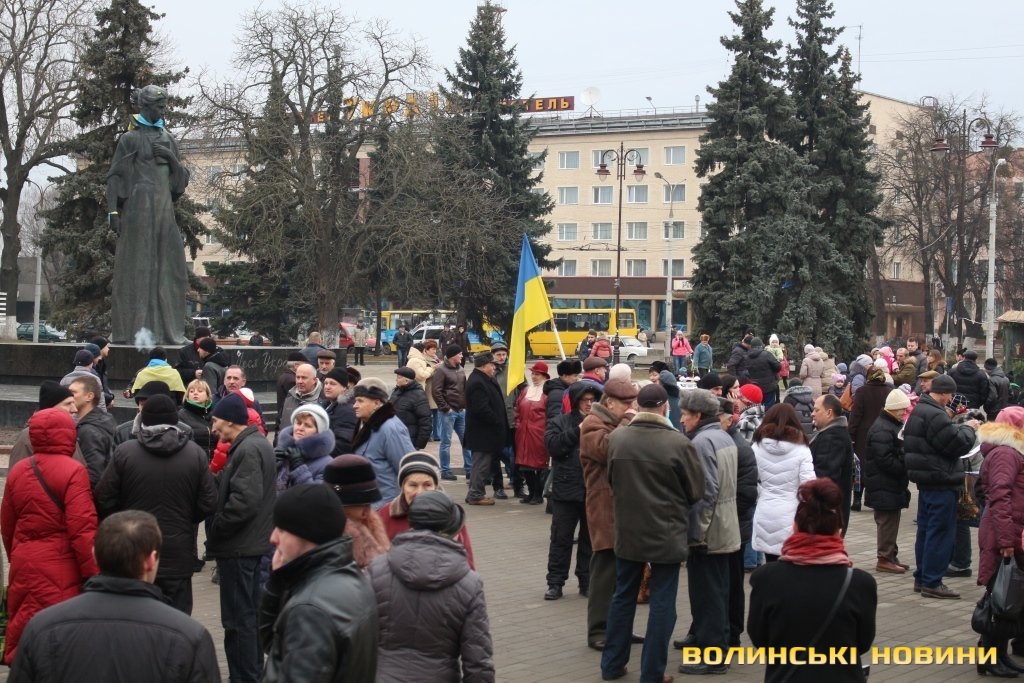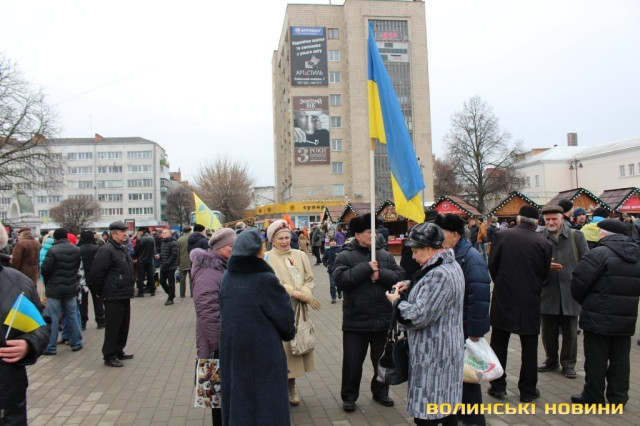 Сотні лучан зібралися на Театральному майдані. Дехто приніс синьо-жовті прапори, дехто взяв симоліку громадських організацій та політичних партій.