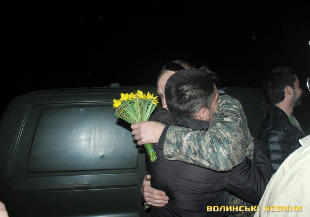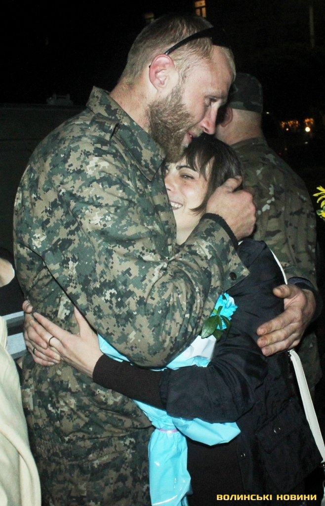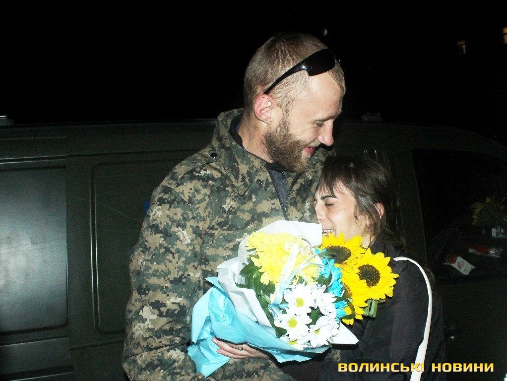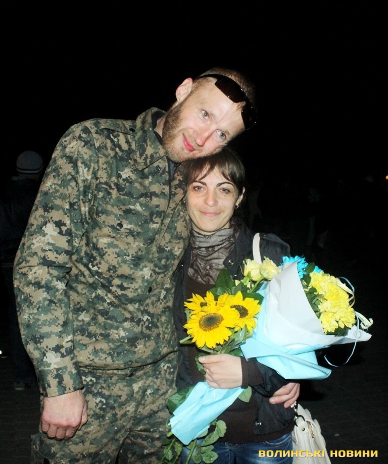 Емоційно зустріла його у Луцьку дружина Антоніна, яка зізналася, що для неї приїзд коханого чоловіка тримали в таємниці. Вдома на нього чекали двоє діток, які щодня молилися за здоров’я тата. Боєць пояснив, що виїзд тримали у таємниці, адже сепаратисти могли виявити колону та обстріляти її із мінометів з будь-якої лісопосадки.