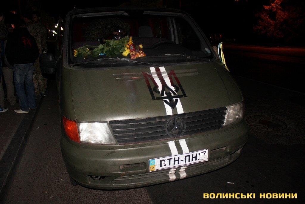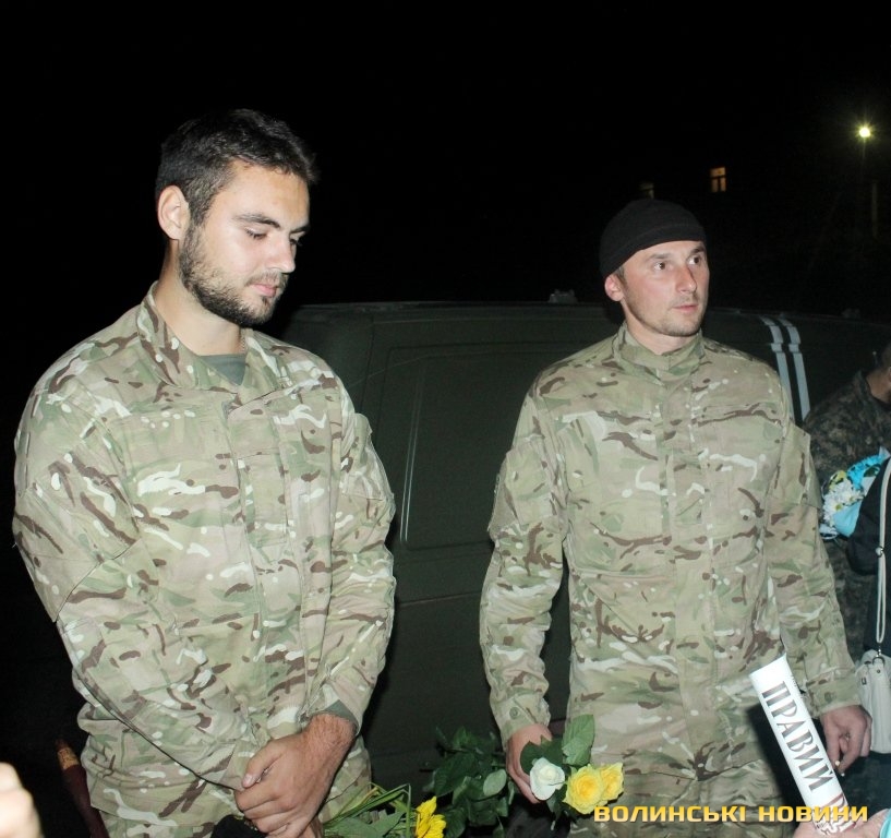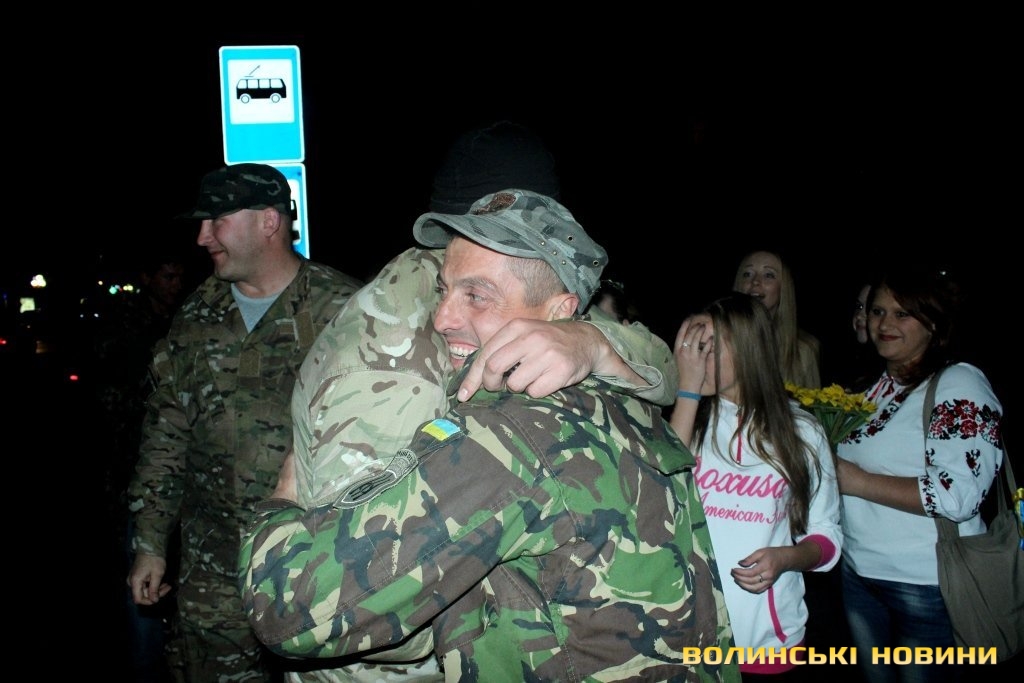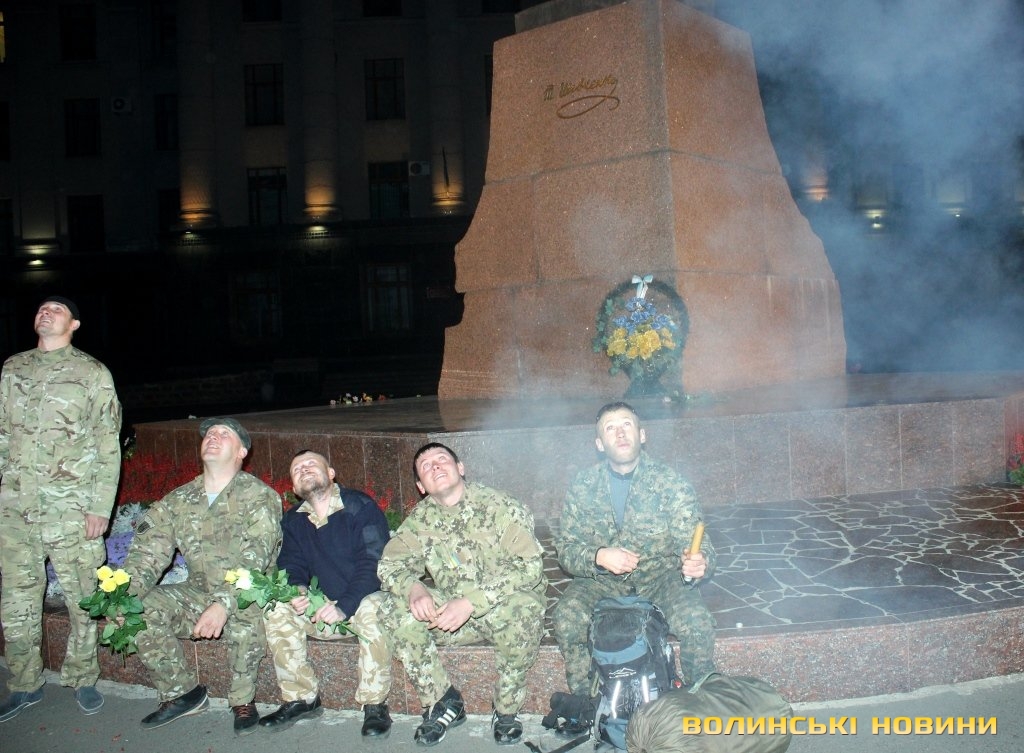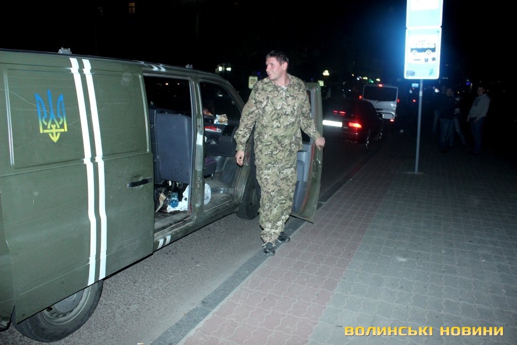 Зустрічали добровольців-волинян вигуками «Герої!» родичі, друзі та активістки із жіночої чоти «Правого сектора» 29 вересня поблизу пам’ятника Тарасу Шевченку у Луцьку.