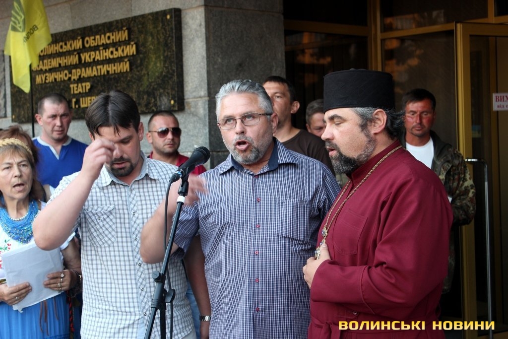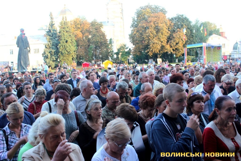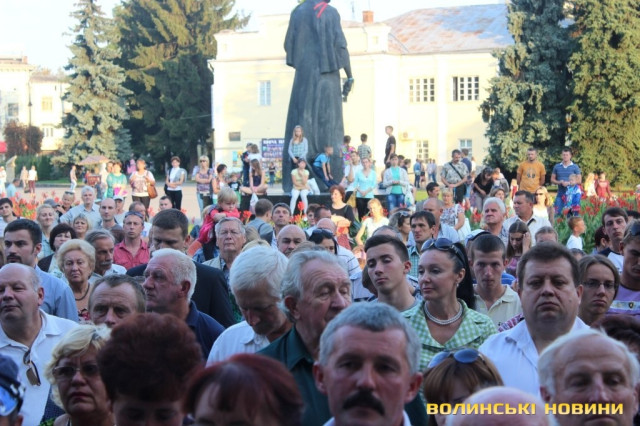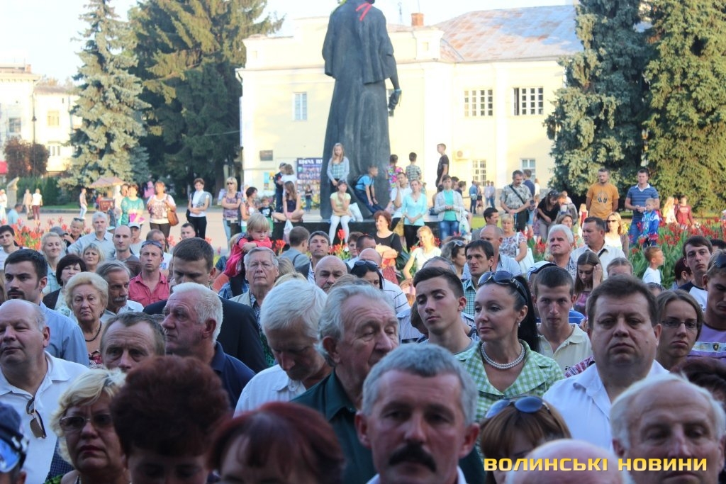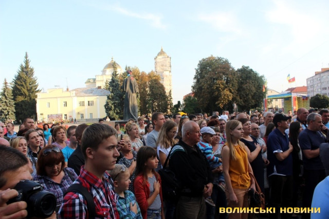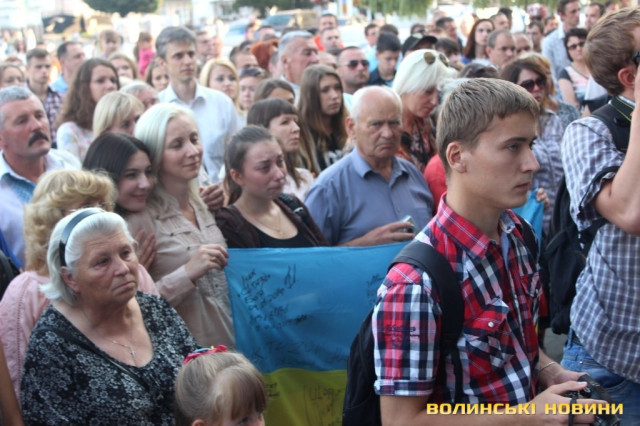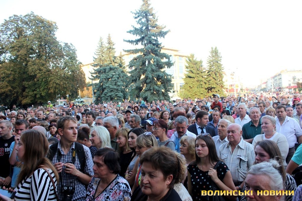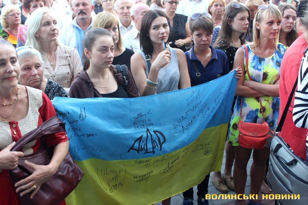 До громади звернувся командир другої Волинської роти батальйону, який нині перебуває на лікуванні, Ігор Лапін. Він закликав усіх хвилиною мовчання вшанувати пам'ять полеглих бійців. Від імені солдатів він подякував волинянам, завдяки підтримці яких бійці одягнені та ситі й мають чим воювати. З його слів, сьогодні не всі військові волиняни змогли бути присутніми, адже дехто загинув, дехто лікується в госпіталях. Ті, хто вже одужав, сьогодні знову вирушають на Схід. З його слів, небагато тих, хто вірить, що перемир’я буде тривалим і війна скінчилася.