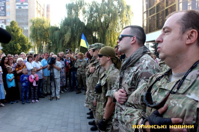 Бійці легендарного батальйону «Айдар», які брали участь у бойових діях та знову вирушають на Схід, зустрілися з міською громадою у центрі Луцька.