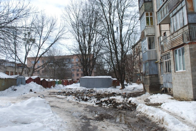 Мешканці будинку на вулиці Орджонікідзе, 30 вважають, що сміттєвоз застряг у ямі їхнього двору через заблокований гаражами проїзд