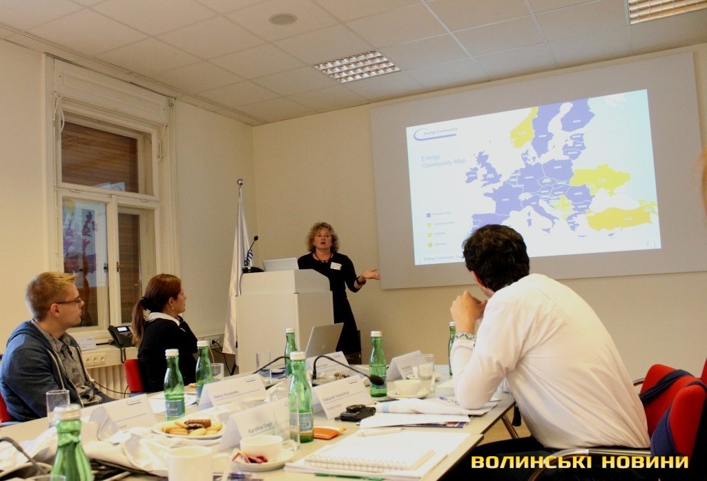 Першого дня відбулася найголовніша робоча зустріч з працівниками Секретаріату Енергетичного Співтовариства, який розташований у центрі Відня. Під час зустрічі менеджер по зв’язках із громадськістю Енергетичного Співтовариства Барбора Пойнер (одна з лекторів семінару, що відбувся у Києві) презентувала його діяльність загалом, голова газового відділу Енергетичного Співтовариства Кароліна Чегір розповіла про імплементацію Третього енергопакету в газовій галузі, керівник електроенергетичного відділу Енергетичного Співтовариства Сімон Юзунов розповів про вимоги Третього енергопакету в сфері електроенергетики, відряджений експерт Енергетичного Співтовариства Світлана Карпишина поінформувала про вимоги щодо енергоефективності.Здавалося б, навіщо це нам? Але насправді, Енергетичне Співтовариство займається розробкою законопроектів, які згодом виносяться на розгляд комітетів Верховної Ради України, щоб ці законопроекти в контексті євроінтеграції і реформ відповідали директивам і регламентам ЄС, що означатиме поступову інтеграцію України в єдиний енергоринок і ринок газу відповідно.