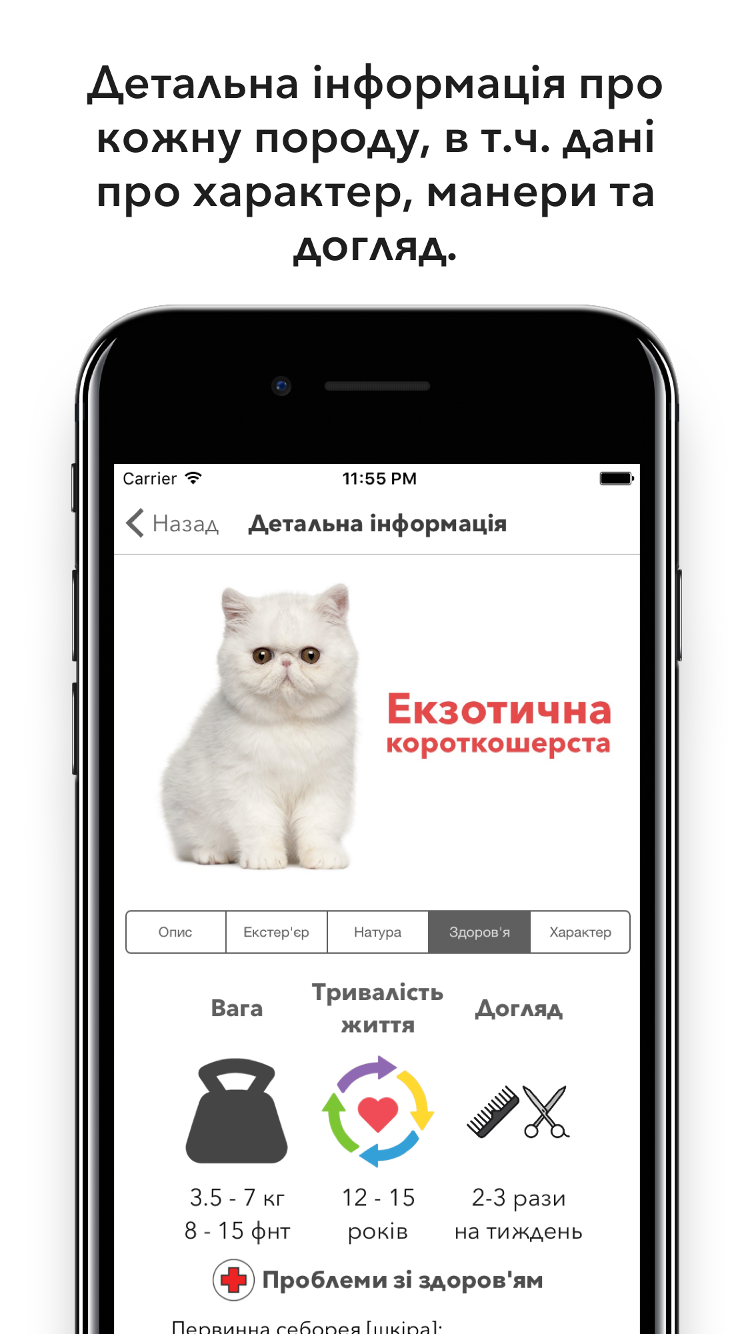 «Наприклад, стаючи власником британської кішки, чи усі готові, що представники цієї породи не люблять сидіти на руках? Чи багато людей, що мають вдома перса, готові стати постійними клієнтами ветеринарних клінік, адже у цих кішок досить слабке здоров’я і вони потребують не лише щоденного розчісування, але й частого миття очей через сльозотечі? Чи готові ті, хто збирається придбати бенгала чи сіамця, до того, що ці кішки є дуже рухливими і їм необхідно щоденно приділяти певну увагу, аби спалювати зайву енергію. З багатьма подібними особливостями неможливо боротися», - зазначає автор додатку.