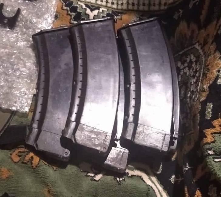 Учора, 26 листопада, під час проведення санкціонованих судом обшуків в оселі та автомобілях волинянина правоохоронці вилучили два пістолети зі спорядженими магазинами, три ручні гранати, майже 400 набоїв, пристрої для безшумної стрільби, вісім споряджених магазинів та складові частини й механізми до різних видів вогнепальної зброї (стволи, штики, затвори, ударно-спускові механізми), два ножі, вогнепровідні шнури та мобільний телефон.