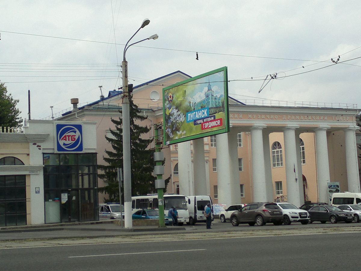 Крім того, реклами на білбордах трохи – мабуть, тим небагатьом, які ще працюють у Луганську, вона не по кишені. Тому на багатьох білбордах красується різного роду соціальна реклама й пропаганда "ЛНР".