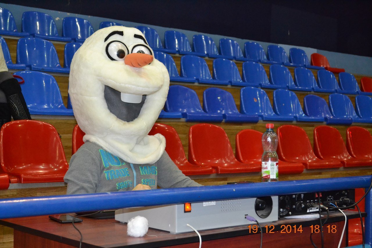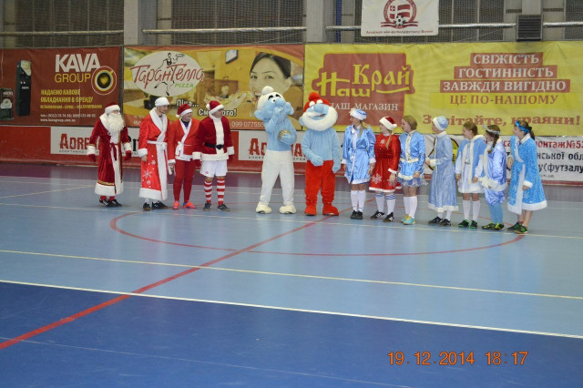 Гравці у костюмах Дідів Морозів та Снігуроньок, судді - Смурфики, а за пультом управління футбольним таблом - Сніговик. Розминка, традиційне привітання учасників і обов'язково - налаштованість на перемогу.