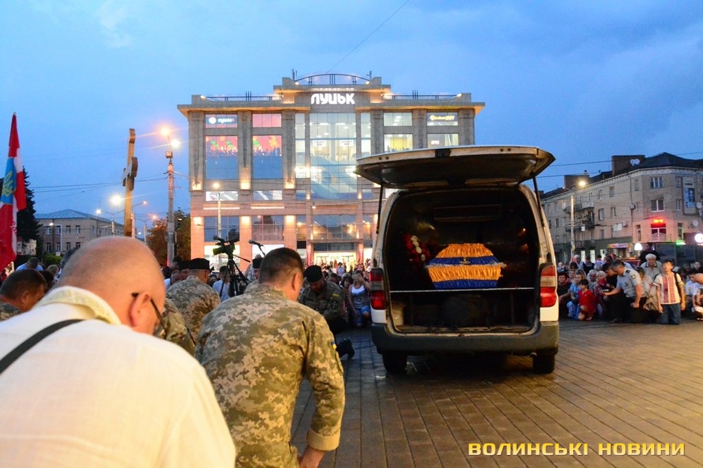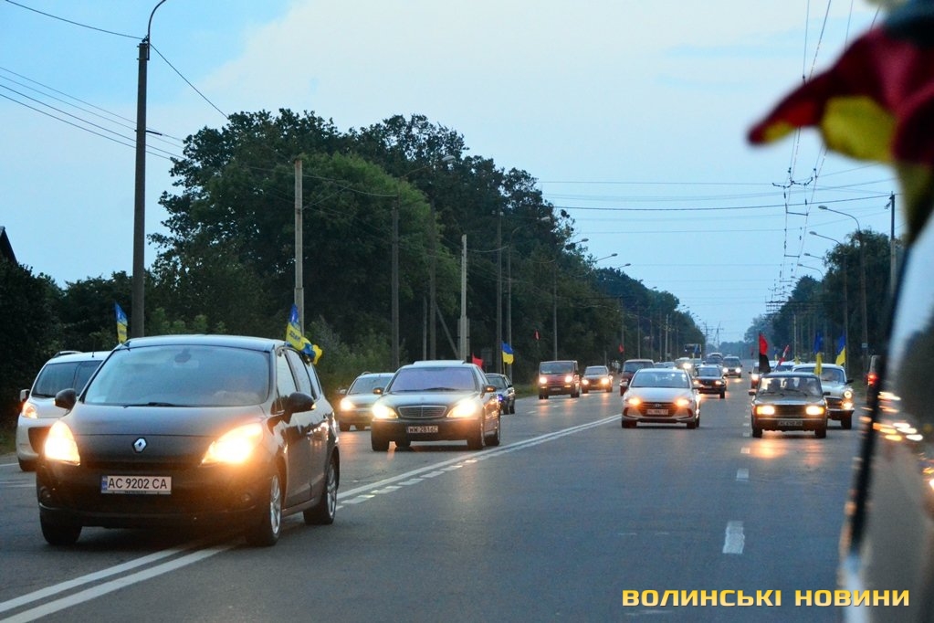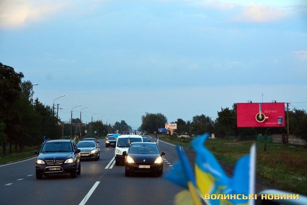 Зустрічали загиблого героя увечері 24 серпня на Цуманському перехресті, від якого траурна колона вирушила до Луцька.