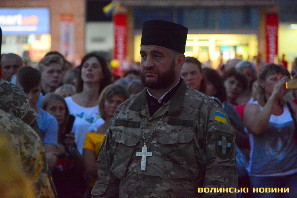 «В сьогоднішній день ми зустріли героя, і Бог зустрів його. Наша молитва та наша пам’ять – це те, що допоможе перемогти. В сьогоднішній день він загинув, поліг для того, щоб ми могли святкувати День Незалежності. Він віддав своє життя для того, щоб ми спокійно ростили своїх дітей, народжували, одружувались та давали життя. Здається, що це лише один хлопець, але це син та чоловік, це батько, це українець. З таких хлопців складається еліта України, сьогодні привезли героя, і він вартий того, щоб його пошанували. Бог дав так, щоб його привезли саме в цей день – День Незалежності, за яку він поліг. Цінуємо героїв та їхніх матерів! Ми маємо дякувати тим, хто нас захистив!» - зазначив Михайло Бучак та закликав усіх вшанувати героя хвилиною мовчання.Насамкінець над Театральним майданом зазвучало «Ще не вмерла України…».