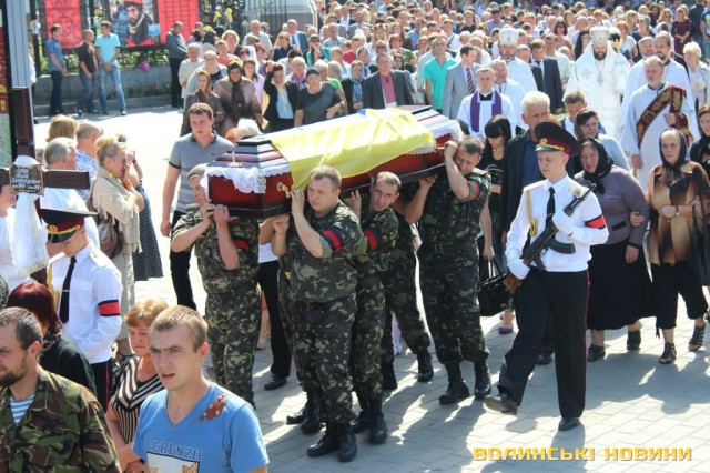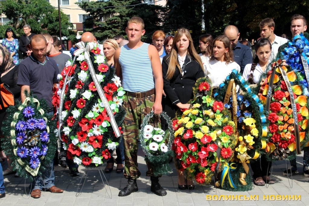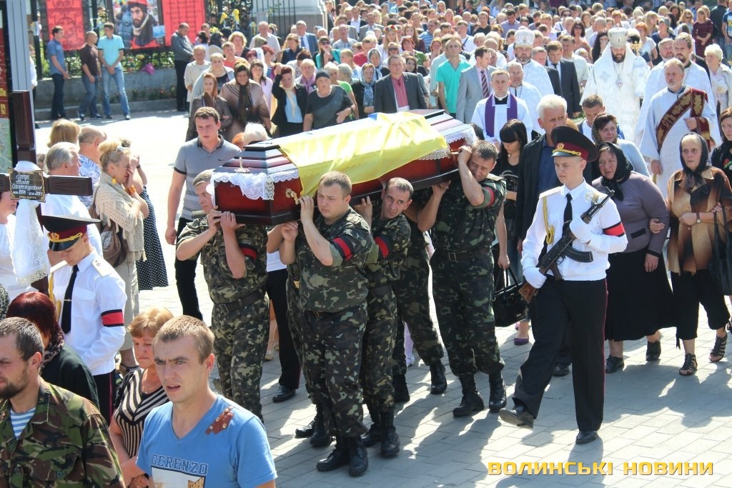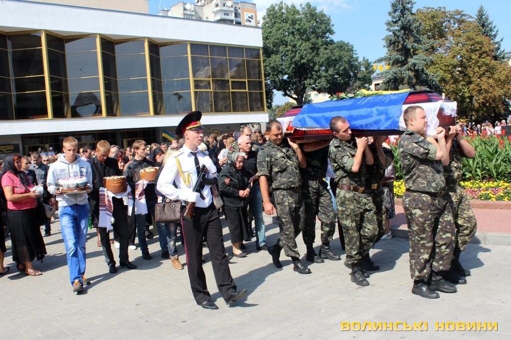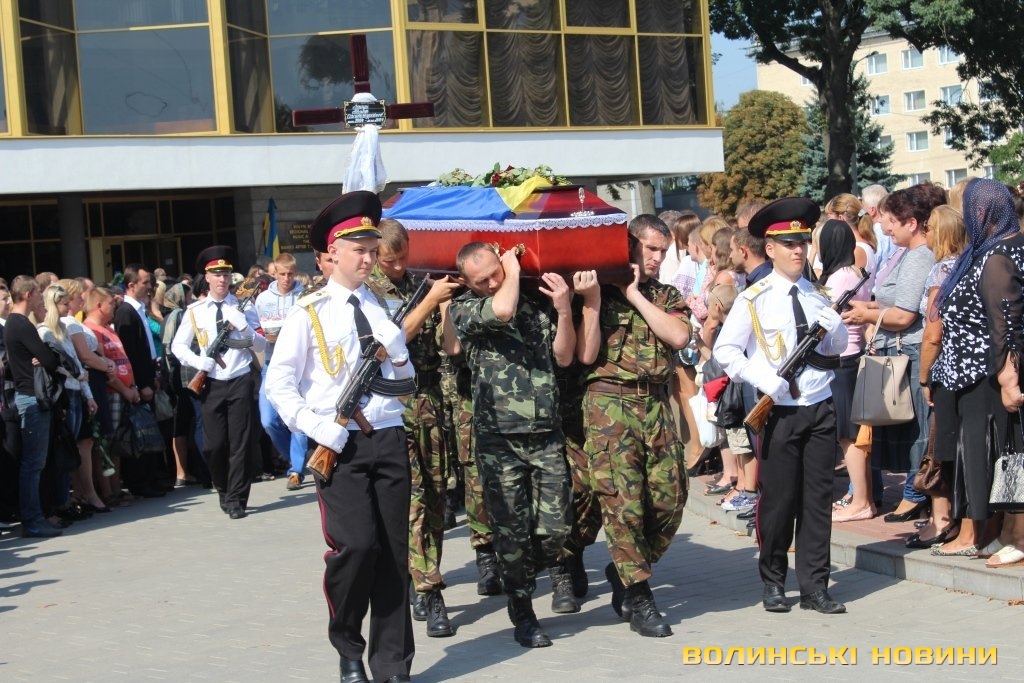Він наголосив, що біль, який сьогодні відчувають у своїх серцях батьки хлопців – наш загальний біль. Він зауважив, що усе менше людей, бачачи жалобну процесію на Театральному майдані, проходять повз не зупинившись. З його слів, раніше людям здавалося, що «це чиєсь горе», в певний момент почали звикати до того, що «знов одного застрілили». Тепер українська свідомість пробуджується і люди говорять про те, що горе прийшло у місто та область. Не важливо, з якого міста чи села загиблий воїн, сльоза котиться у всіх волинян, адже це наше горе.