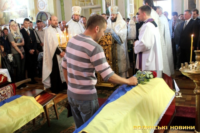 Відспівували загиблих у Свято-Троїцькому кафедральному соборі. Як зазначив митрополит Луцький та Волинський Михаїл, біль та скорбота сьогодні наповнюють чашу нашого терпіння, адже у храмі знову молитимуться, проводжаючи в останню дорогу кращих синів, героїв, які зі своїми друзями та побратимами захищали нашу Україну.