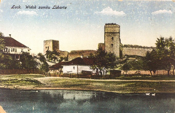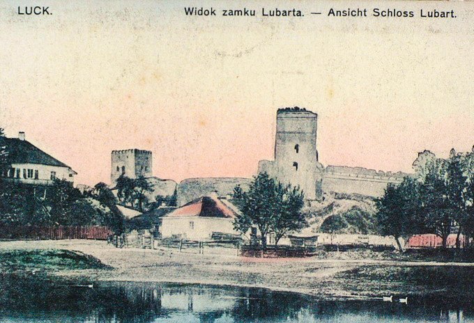 Чи не перші кольорові поштівки з виглядами Луцька надрукувало у 1916 році видавництво Абрама Ісаака Островського у Лодзі. На них переважно замок Любарта. Для цих робіт майстри використали негативи луцького видавця Герша Лібермана, виконані в перші роки нового століття.