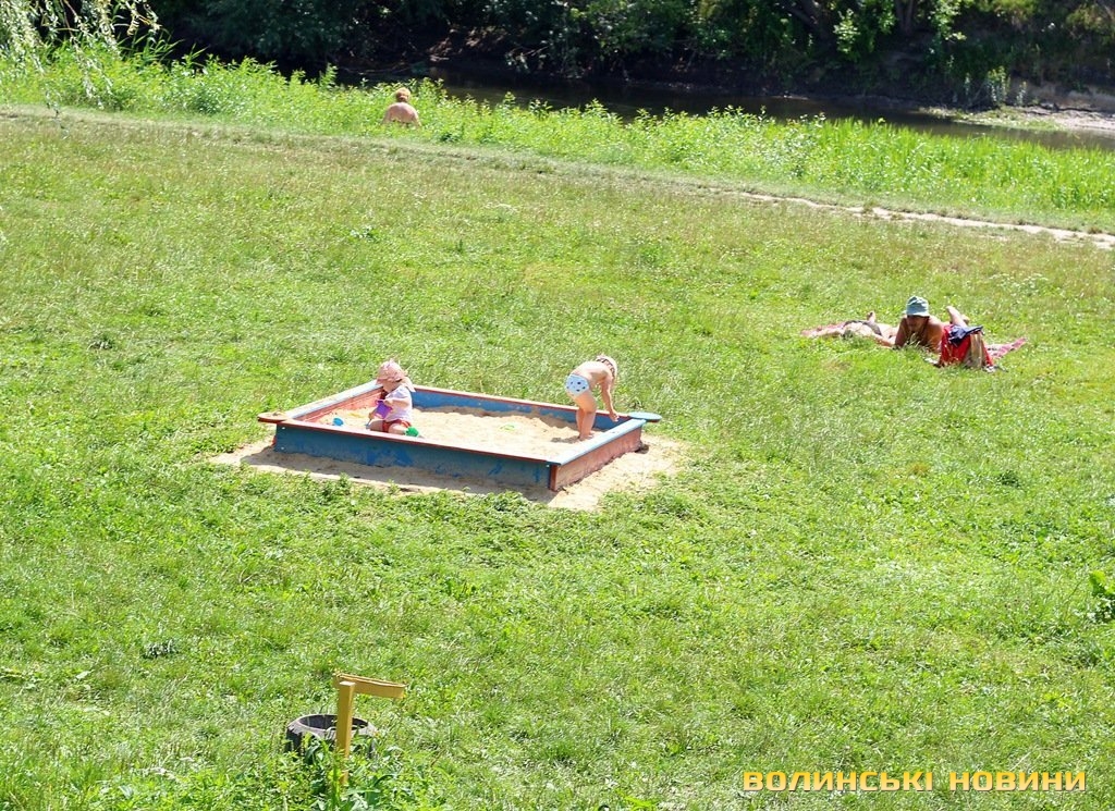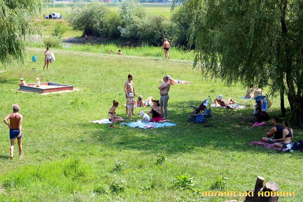 Тим часом, Центральний пляж міста, що біля річки Стир, вирує життям. Охочі позасмагати із насолодою підставляють свої тіла яскравому сонечку. Окремі й не виходять на берег із швидкоплинної водойми.Неабияку посмішку викликали два школярі, які гуляли парковою алеєю. Один із них запропонував іншому скупатися у ставку біля атракціонів, що поріс зеленою ряскою. Й, коли хлопчик відмовився, його товариш із «розумінням справи» зазначив: