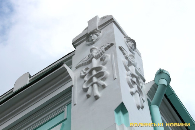 Луцьк, звісно, не може конкурувати з містами Західної Європи та й навіть Львовом за кількістю барельєфів на будинках. Втім, якщо бути уважнішим, можна побачити чимало скульптурних форм на фасадах будівель. До прикладу, зразок архітектури сецесії (модерну) на вулиці Лесі Українки, споруджений акціонерним товариством «Гранберг і Грінберг Стокгольм-Петербург», прикрашений символами античного бога торгівлі Меркурія. Барельєфи мають ще декілька будинків на головній пішохідній вулиці міста, серед них – будівля на розі Кривого Валу та Лесі Українки, що має збережений автентичний передвоєнний металевий купол.