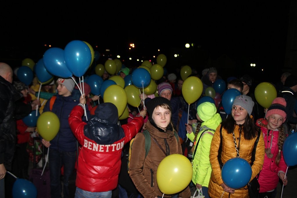 Чимало лучан та представників влади прийшло до потяга, аби зустріти школярів з Волновахи, які тиждень перебуватимуть на волинській землі. Близько сотні синьо-жовтих кульок створювали святковий настрій. Дітлахи ж теж з радістю прийняли дарунки та подякували за них.