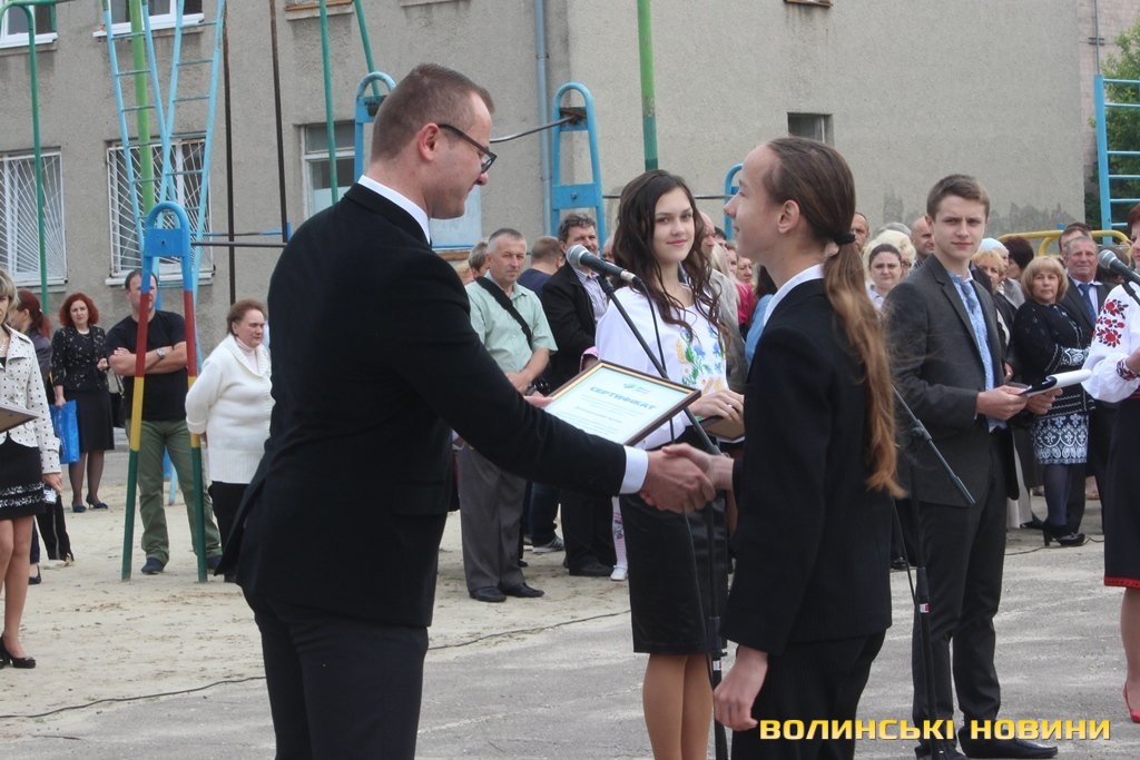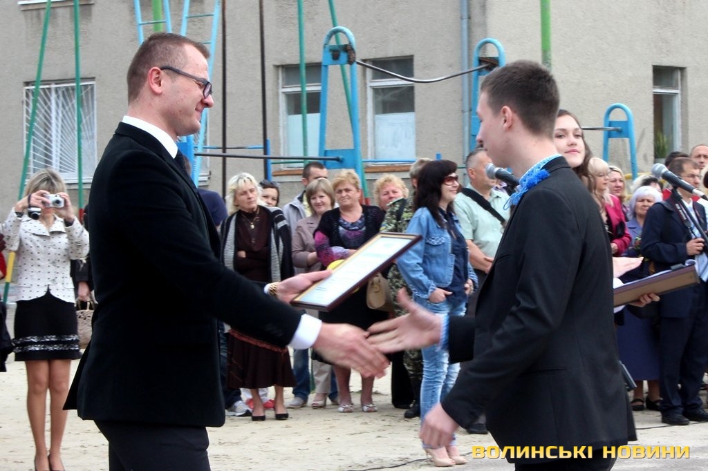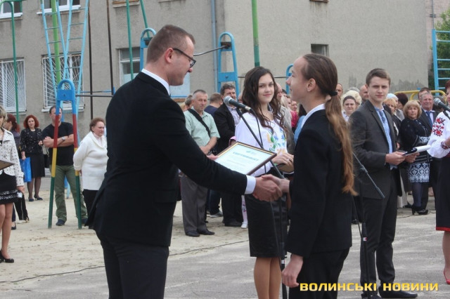 А вісьмох учнів - переможців всеукраїнських олімпіад, турнірів та конкурсів – під час лінійки чекав сюрприз. Вони отримали іменні стипендії від благодійного фонду «Фонд Ігоря Палиці – Новий Луцьк». Варто зауважити, що ця програма вже у місті діє другий рік поспіль. Цього року традицію продовжили.