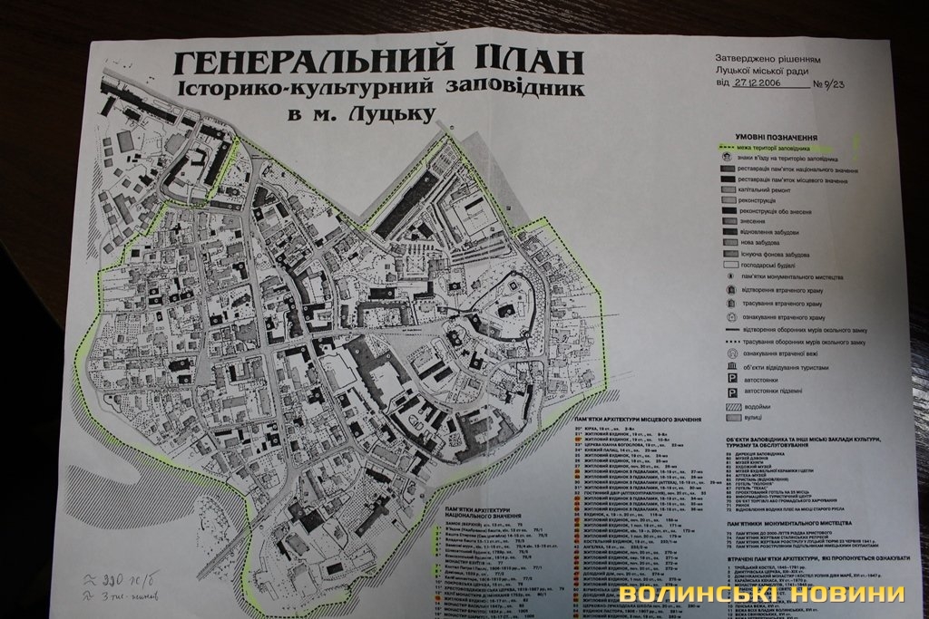 Зауважимо, що за станом на сьогодні 41 гектар вважається територією «Старого міста». Також Генеральний план історико-культурного заповідника в місті Луцьку включає 19 пам’яток архітектури національного значення, 58 пам’яток місцевого значення, 14 об’єктів заповідника та інших міських закладів культури, туризму та обслуговування, 4 пам’ятки монументального мистецтва, також є 16 втрачених пам’яток архітектури, які пропонують ознакувати.