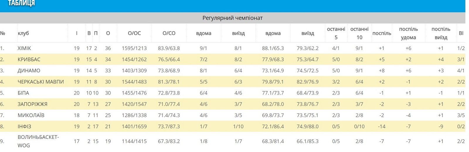 У статистичних показниках команди рівні між собою. Відсоток вдалих кидків фактично співпадає, та триочкові кращі у «лицарів» (30% проти 25,6). Кількість підбирань трішки більша у гостей – 40,3 проти 35,7. Найкращим «снайпером» у миколаївців є Олександр Шостуха (12,6 очок за гру). Найбільше підбирань за гру у гостей робить Ілля Жуковський – 7, а вдалих передач Владислав Тонченко – 5,6.