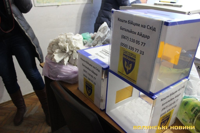 Теплу білизну, а також чай та солодощі, які відправлять солдатам на схід України, передали в штаб волинської Самооборони.
