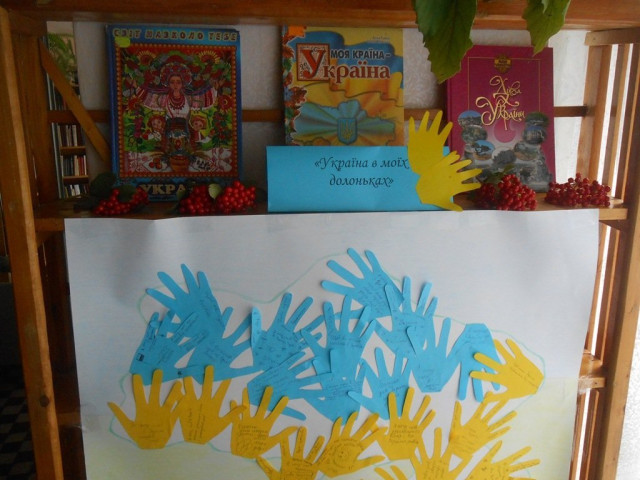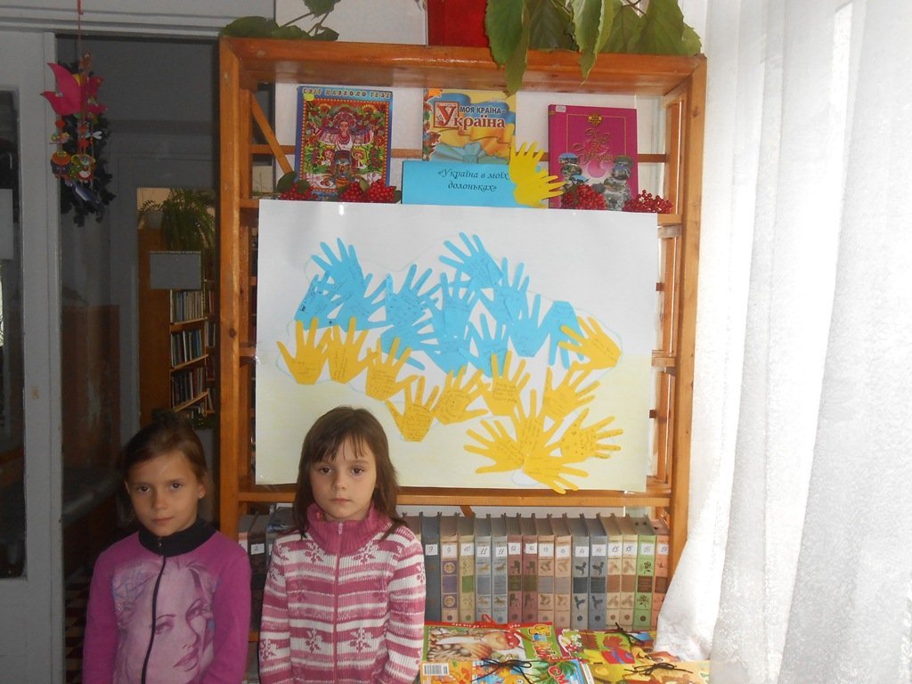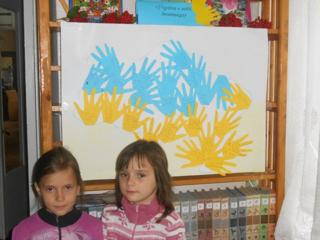 Дітки, які відвідують бібліотеку, теж небайдужі до майбутнього Батьківщини. Вони власними зусиллями зробили плакат "Україна в моїх долоньках", - повідомляють організатори.