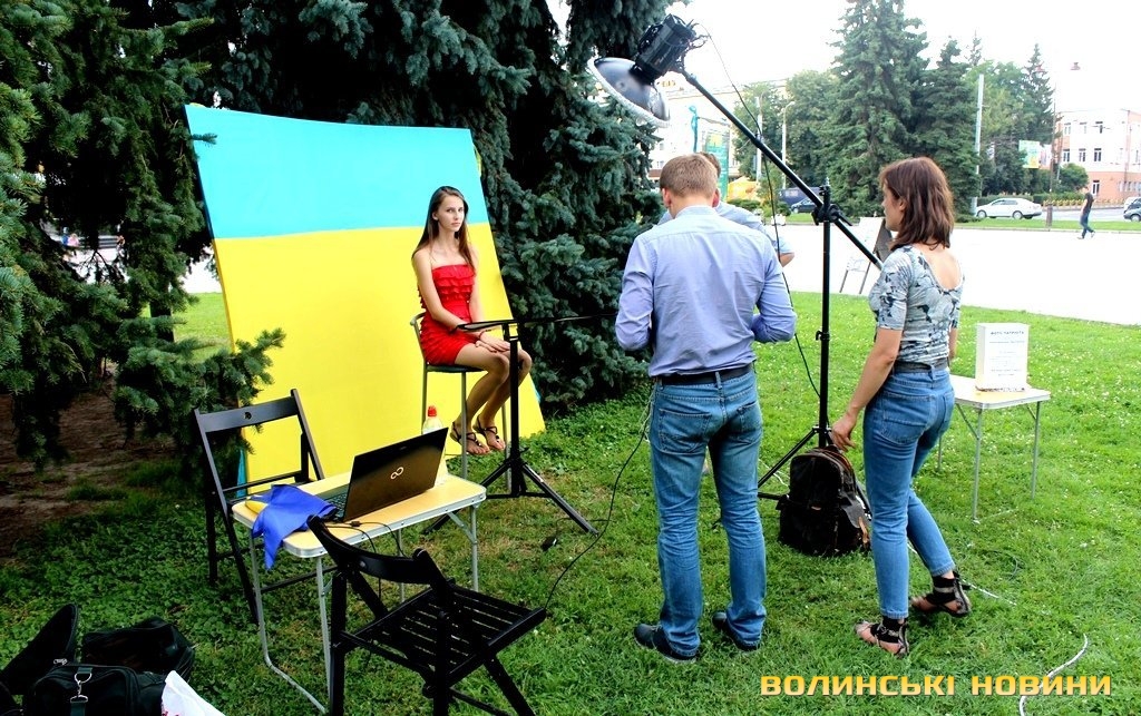 На волонтерських засадах фотографи роблять перехожим патріотичні фото в центрі Луцька. Так вони збирають кошти для адресної допомоги волинянам, які захищають Батьківщину в зоні АТО.