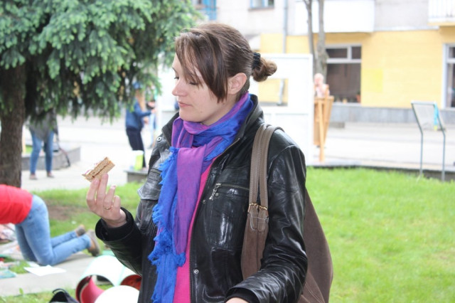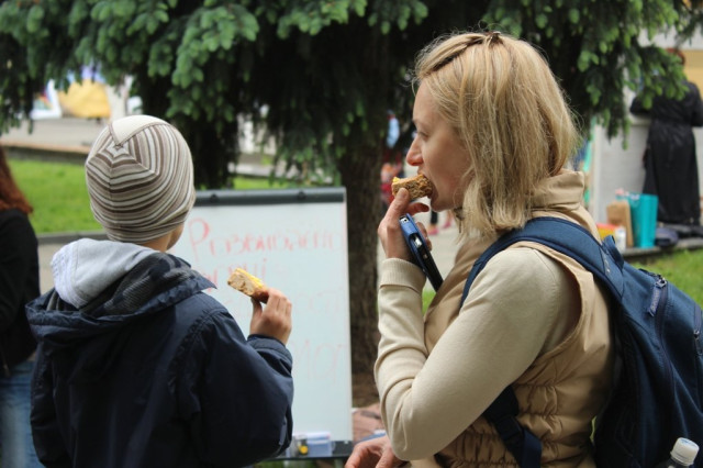 Опісля майстер-класу, коли смаколики були вже готові, їх розрізали на шматки та роздали присутнім.