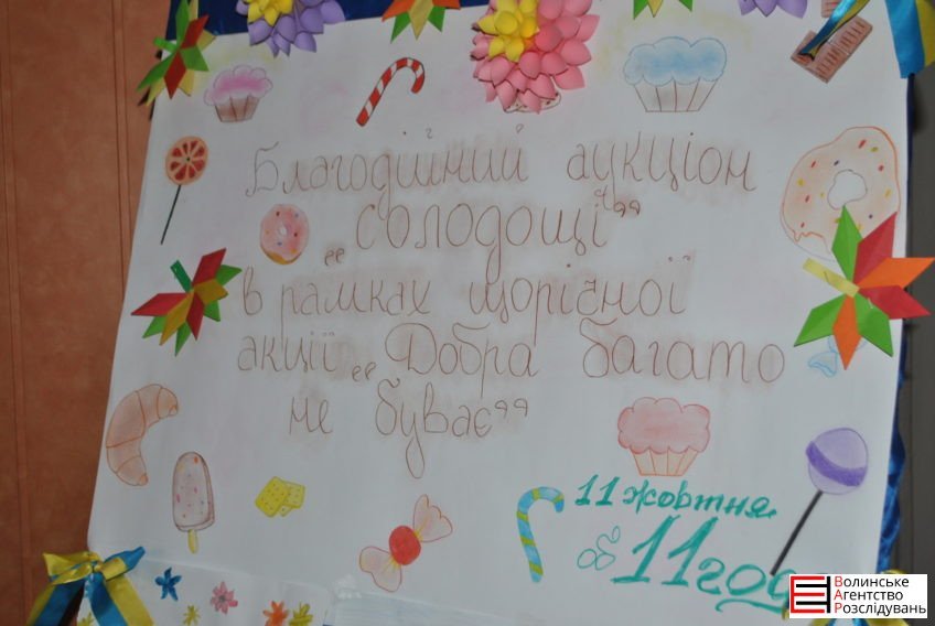 Дирекція школи з учнями та батьками організували благодійний ярмарок «Добра багато не буває», де продавали домашні смаколики.На столах у фойє школи – різноманіття солодощів: цукерки, пиріжки, пончики, пироги, печиво та торти. Діти за півгодини розкупили солодощі, а гроші кидали у спеціально встановлені скриньки.Зі слів заступника директора з виховної роботи Інни Савчук, усі виручені кошти передадуть дітям-сиротам. Жінка розповіла, що ярмарок проведуть у 2 етапи.
