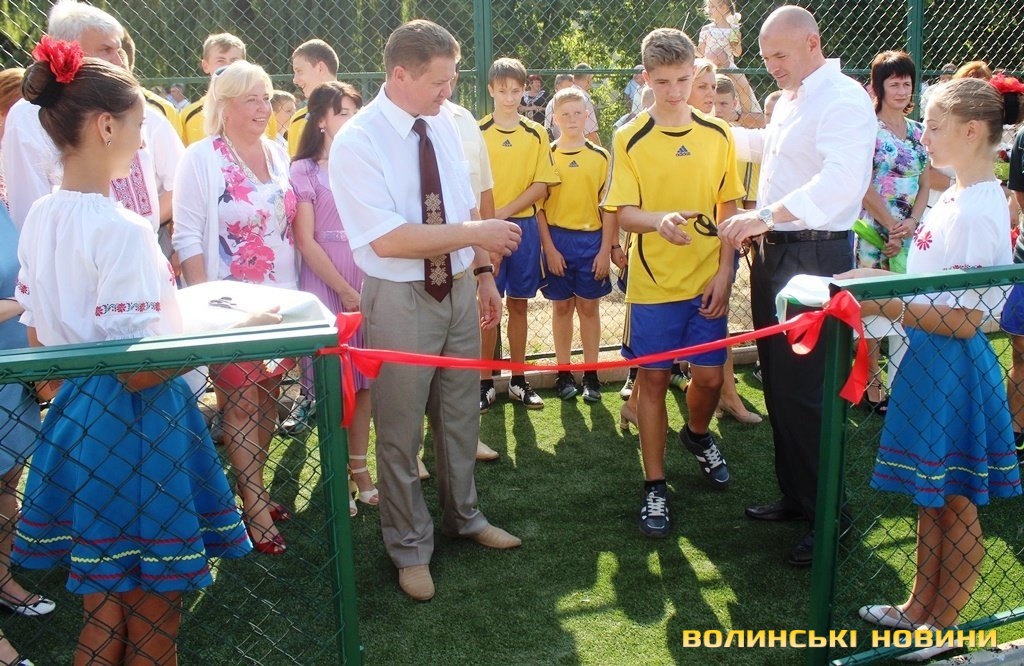 Після урочистої частини присутні перейшли до офіційного відкриття міні-футбольного поля. Червону стрічку перерізали директор школи Олександр Дубина та капітан футбольної команди, десятикласник Максим Ковальчук.