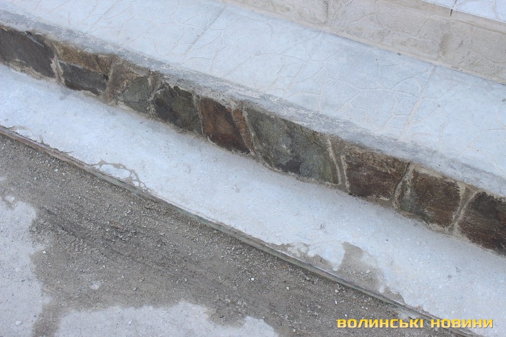«80% цього ремонту – це кошти із фонду розвитку. Ми побачили, що ефективність таких структур дуже велика, адже є можливість залучати не лише батьківські гроші на вирішення актуальних питань в навчальному закладі, а й спонсорську допомогу та брати участь у проектних конкурсах. Також це чітка звітність й батьки колегіально вирішують, на що йтимуть гроші. Наш фонд розвитку діє в школі три місяці й результати бачите самі», - наголосив Шнит.У КЗ «Луцький навчально-виховний комплекс загальноосвітня школа І-ІІ ступенів № 10 - професійний ліцей Луцької міської ради» проблема з подівр’ям, на якому збирається вода. А все через те, що газони знаходяться на підвищені, на тротуарах вклали бруківку, що теж дало підвищення. Як результат, вся дощова вода стікає до входу школи й подекуди закриває першу й другу сходинки.