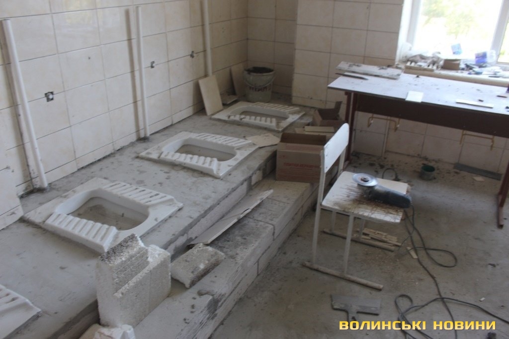 Першим об’єктом стала Луцька спеціалізована школа I-III ступенів №5. Інженер управління освіти Луцької міської ради Юрій Коцур розповів, що усі роботи виконані на 70%.