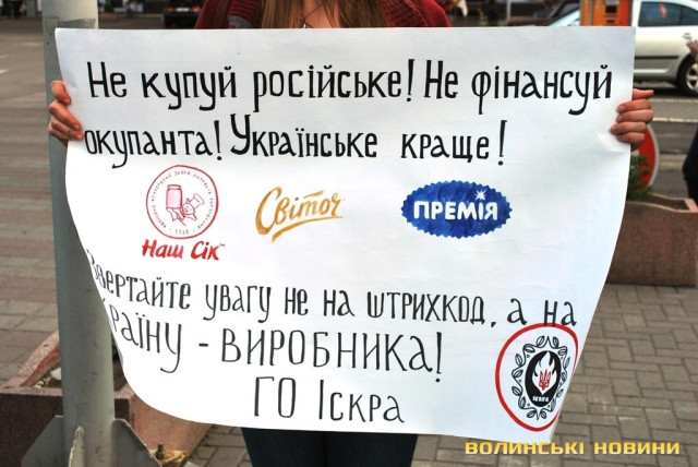 А ти чи твої однодумці запропонували якісну заміну цим товарам??? У мого знайомого в дитини немає алергії тільки на одну кашу котра є російського виробництва (фірма нестле) так от завдяки Вам він цієї каші в Луцьку знайти не може. Пане Андрій Отченаш прийдіть до нього і поясніть 5-ти місячній дитині що вона голодна тому, що це товари окупантів. Виключіть газ, викиньте газові плити та котли, спаліть машину, не їздіть на газельках, камазах і.т.д бо це все від окупантів. А, ще давайте здеріть усі дороги в місті і в області, зруйнуйте заводи, фабрики, школи і т д БО ЦЕ ВСЕ ЗБУДУВАЛИ ЗА ЧАСІВ СССР а він такий поганий той союз був..... але от покажіть панове що за часів незалежності збудовано? А НІЧОГО !!! Тому розуйте очі і живіть достойно! НЕ МОЖЕТЕ ЗАПРОПОНУВАТИ НІЧОГО КРАЩОГО ТО НЕ РУЙНУЙТЕ ТЕ ЩО Є !