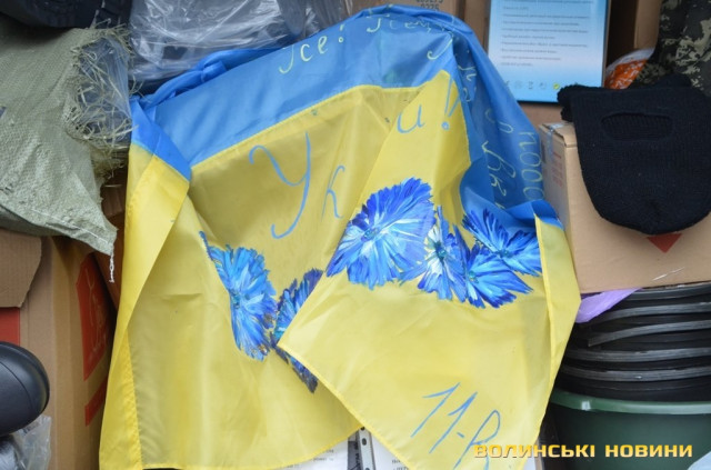 А чи не найціннішим подарунком солдатам стане український прапор, розмальований волошками. Такий неординарний сюрприз підготували для солдат учні 11-В класу луцької гімназії №4. Також діти зібрали для бійців солодощі.Сергій Балицький каже, що наступна їхня волонтерська поїздка у зону військових дій буде ювілейною – сотою.