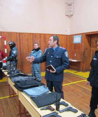 Під час зустрічі правоохоронці ознайомили молоде покоління з умовами вступу до навчальних закладів системи МВС. Бійці «Беркуту» продемонстрували учням засоби індивідуального захисту, шоломи, бронежилети тощо. Різноманітна зброя – від пістолетів до кулеметів – викликала непідробний інтерес та захоплення в учнів, більшість із них вперше знайомились із таким оснащенням міліціонерів.