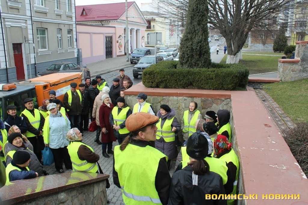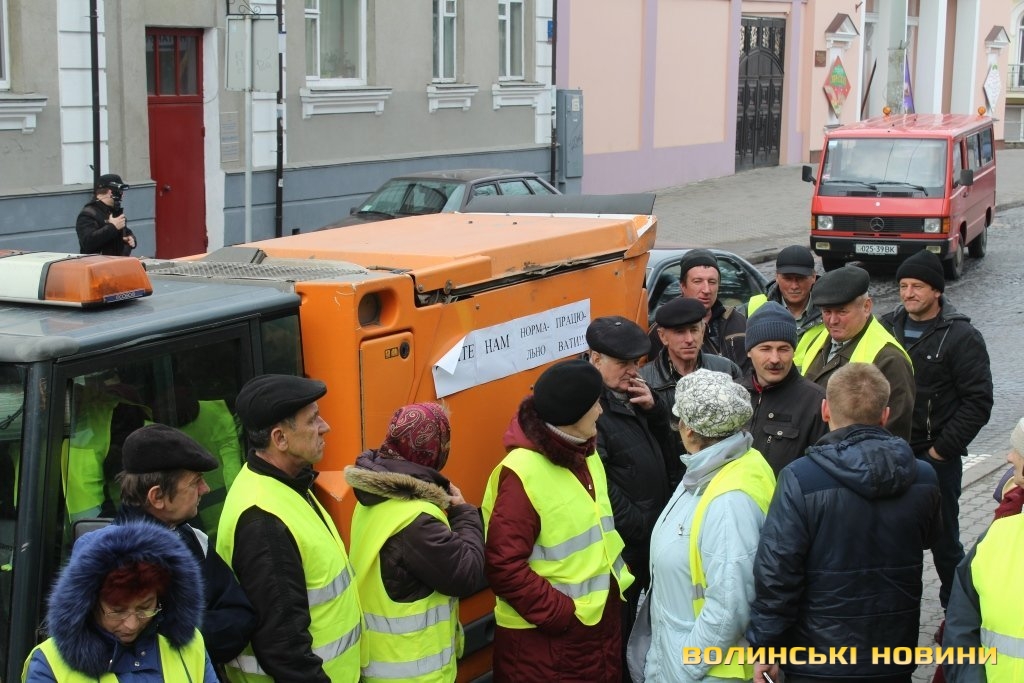 Пікет відбувся 19 березня. Прибиральну техніку вишикували під будівлею мерії, сигналячи та вигукуючи: «Мера!» та «Ганьба!». Через якийсь час працівників запросили всередину, де вони могли висловити претензії Луцькому міському голові Миколі Романюку.
