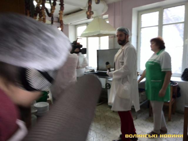 Численна знімальна група на чолі з ведучим Вадимом Абрамовим від входу відразу пішла на кухню. Всі були вдягнуті в білі халати, волосся прикрили шапочками. Обід іще тільки починався, то людей у закладі було небагато. Кухар на роздачі занервувала і погукала жінкам на мийці, аби швидше прибирали. При цьому не переставала обслуговувати відвідувачів, які підходили по двоє-троє. Візитерів із Києва лучани, які звикли обідати в «Берізці», не помітили.