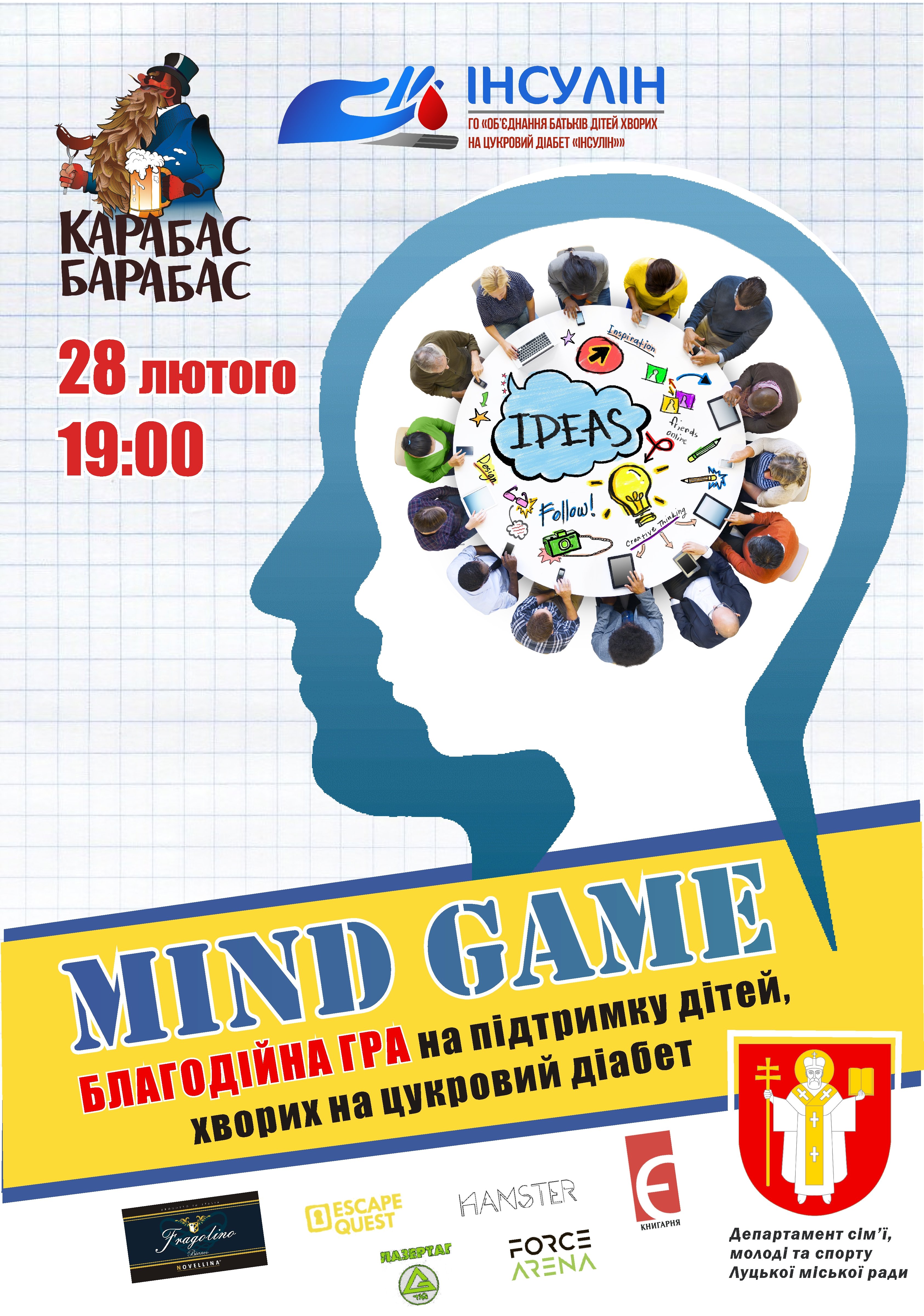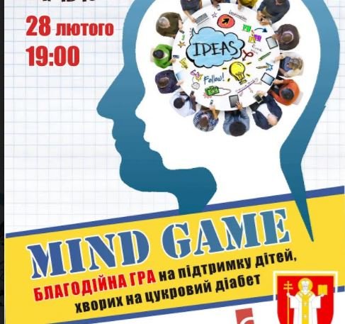 В останній день зими, 28 лютого, в Луцьку організовують благодійну гру Mind Game. Усі зібрані кошти передадуть ГО «Інсулін», що опікується дітьми хворими на цукровий діабет.
