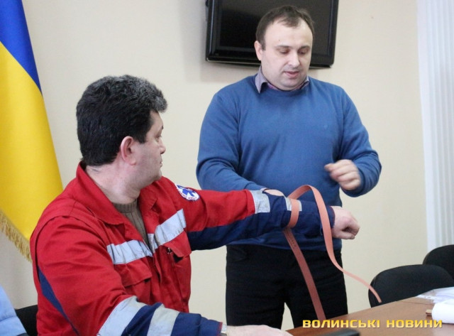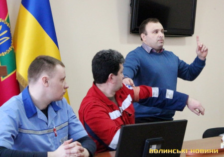 Викладач хірургії Луцького базового медичного коледжу Володимир Держай пояснював бійцям, яким чином ефективно надавати допомогу при різних видах поранень. Він розповів, що при втраті 50% крові рефлекторно зупиняється серце людини, тому діяти під час кровотечі потрібно швидко. Лікар зазначив, що ознакою артеріальної кровотечі є те, що кров струмує фонтаном. Тож, перш за все, потрібно придавити судину пальцем та утримувати. Після цього слід накласти джгут вище поранення. Важливо також записати час накладення джгута. Якщо ж його немає, можна використати максимальне згинання кінцівки, що дозволить зупинити кровотечу на 50-70%.