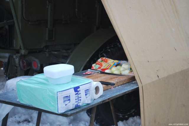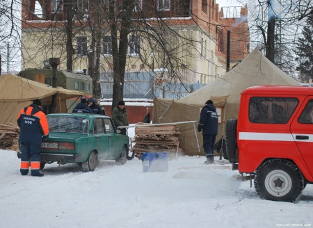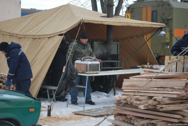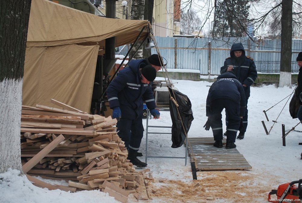 При встановленні намету там - лише представники МНС. «Ми недавно тільки розложилися, то скоро будуть підходити. Я вам скажу, що в 2010 році через подібний центр життєзабезпечення пройшло понад 500 чоловік. Минулого року ми його не робили, бо не було сильних морозів», - розказав фахівець.