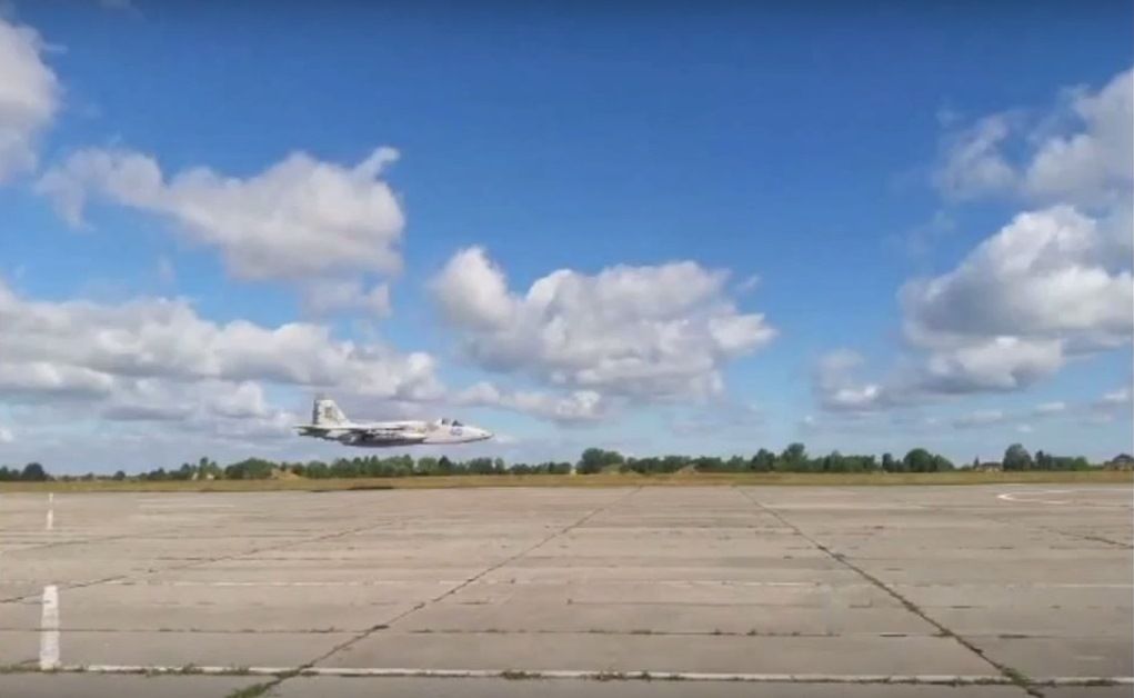 Українські військові відзняли відео відпрацювання штурмовиком Су-25 польотів на наднизькій висоті над Луцьким військовим аеродромом.