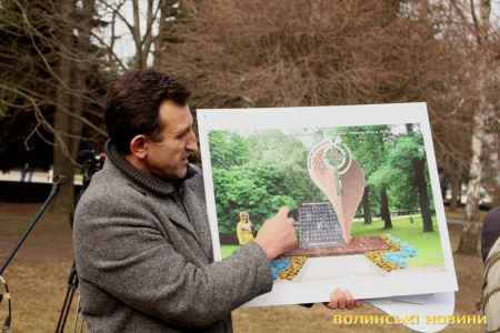 Сьогодні, 20 лютого, у Луцьку відбулася панахида за загиблими на Майдані Незалежності у Києві. Опісля, як уже присутні почали розходитися, увагою присутніх намагався заволодіти луцький скульптор Василь Рижук, який вирішив презентувати власний проект пам’ятної стели героям Небесної Сотні.Нагадаємо, лучан запрошують до обговорення проектних пропозицій пам’ятного знаку Волинським героям Майдану. Так, Василь Рижук почав демонструвати концепцію свого проекту. Мовляв, там мають бути викарбувані імена не лише волинських Героїв, а й усіх полеглих на Майдані.
