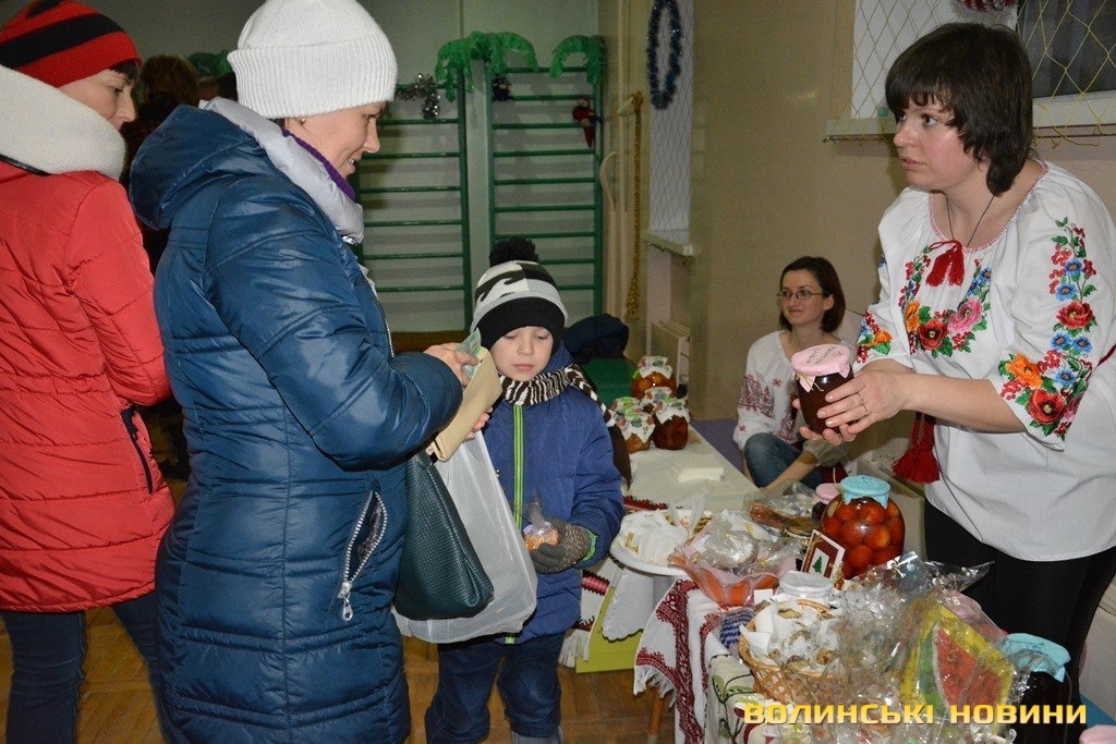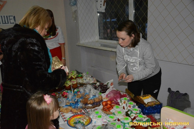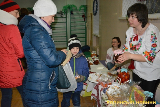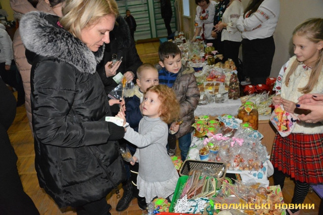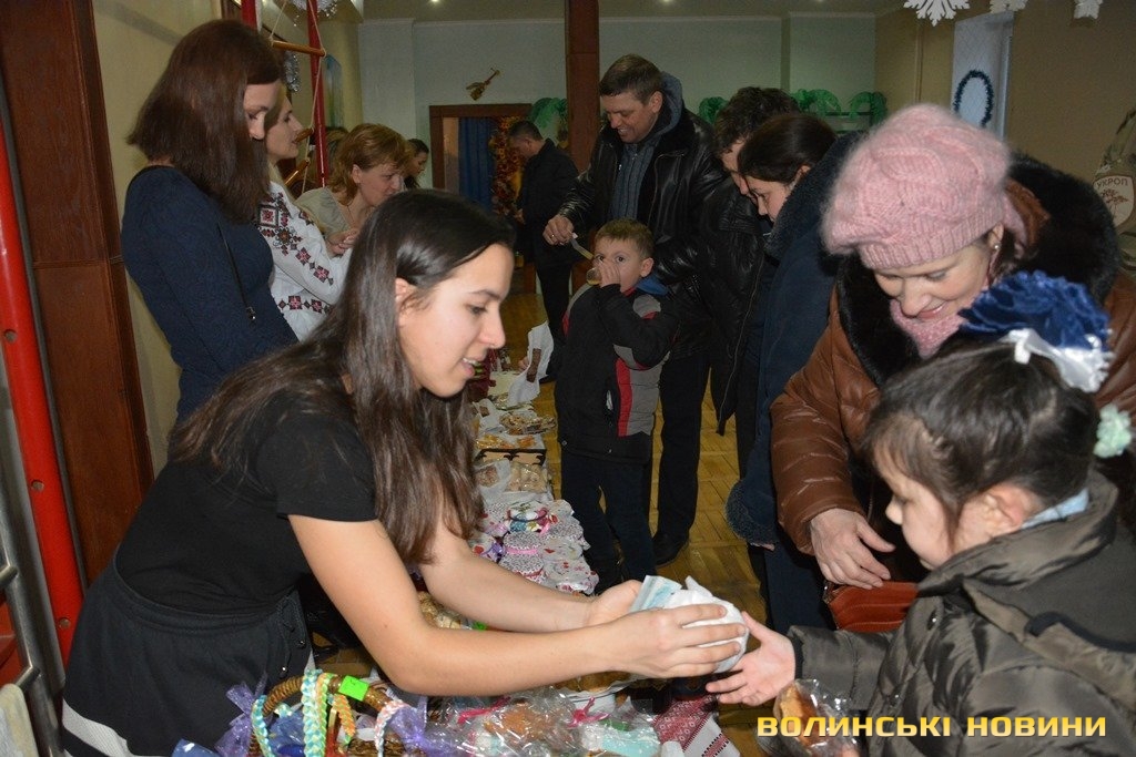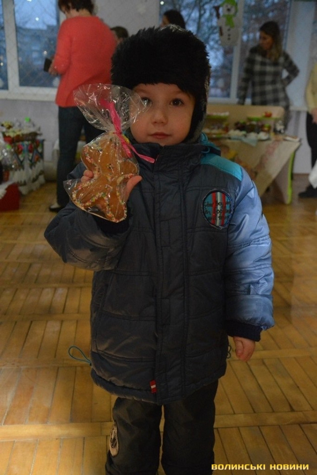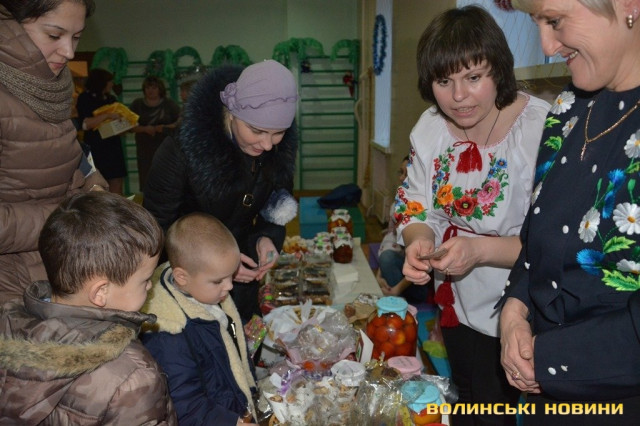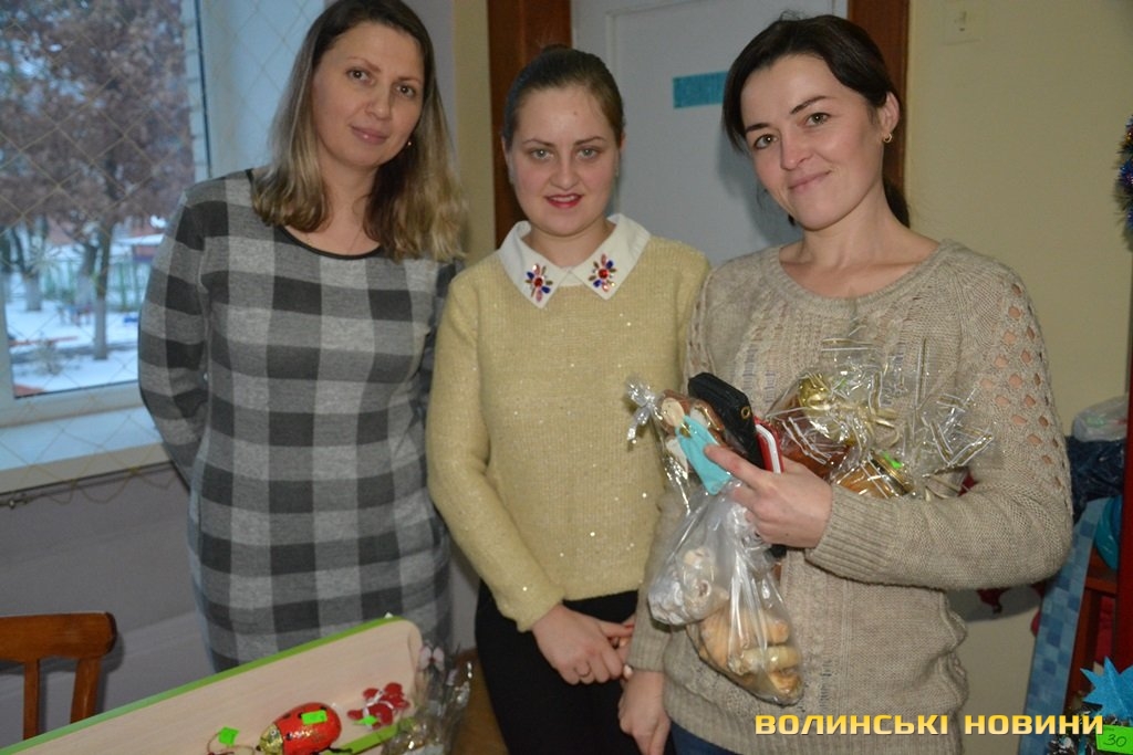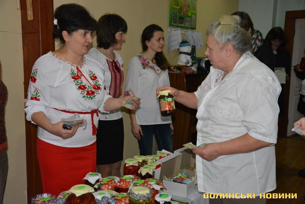 Як розповіла заступниця голови батьківського комітету однієї з груп ДНЗ Катерина Семенюк, її чоловіка мобілізували до лав Збройних сил України. Згодом, після демобілізації, він пішов на контрактну службу у ЗСУ. Тому жінка не з чуток знає, як непросто бійцям на передовій, як сумують вони за рідними, і наскільки для них важлива увага всіх, хто вболіває за рідну країну, прагне зберегти мир у своєму місті, захистити свою сім’ю.Бійці колишньої 51 бригади Павло Ковальський та Віталій Манченко теж були присутні на ярмарку. Як розповів Павло, він виховувався у цьому садочку, зараз у ньому працює вихователем його мама, а побратим Віталій прийшов підтримати усіх разом. Боєць каже, що є членом ГО «Спілка воїнів АТО Волині», яку очолює Олег Твердохліб.Він добре знає цього мужнього воїна і тішиться, що у нас є такі патріоти та фахівці військової справи. Він і його побратими, разом з волонтерами, підтримують нині Олега і бажають йому якнайшвидшого одужання.Завідувач дошкільного закладу Людмила Нагірна розповіла, що ініціатива підтримати бійця надійшла від батьківського комітету. Відтак, заздалегідь домовилися про збір необхідних речей, у тому числі і для діючих військових, тих, хто нині в окопах. Всі охочі батьки змогли приєднатися до цієї акції. Вони приносили теплі речі, засоби гігієни, медикаменти, консервації та різноманітні патріотичні листівки, щоб передати хлопцям на схід у переддень новорічно-різдвяних свят. А на ярмарок, з її слів, батьки приготували переважно смаколики, декоративні прикраси, вироби ручної роботи та інше.Окрім того, на заході розігрували безпрограшну лотерею. А ще була скринька для збору коштів від усіх тих, хто прагнув фінансово долучитися до збору допомоги для Олега Твердохліба.У підсумку, під час благодійного ярмарку вдалося зібрати 6 тисяч 285 гривень. Того ж дня бійці разом із волонтеркою ГО «Яворина» Русланою Вознюк, яка теж була присутня на заході, відвезли кошти додому бійцеві, якого саме на свято Миколая відпустили з лікарні.До слова, всього на післяопераційну реабілітацію та хіміотерапію для Олега Твердохліба необхідно зібрати 450 тисяч гривень.