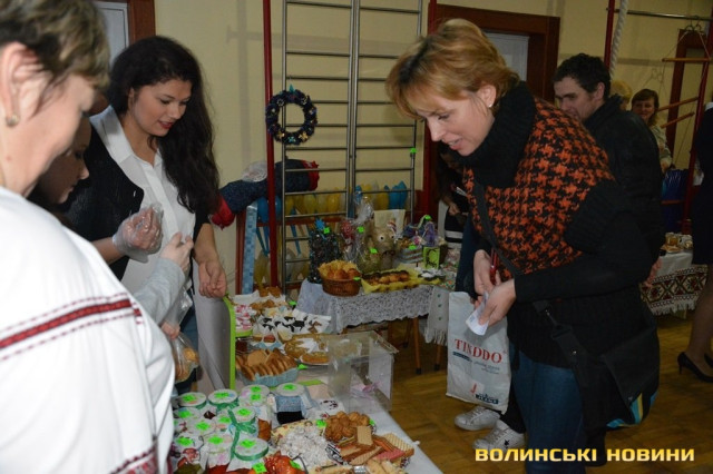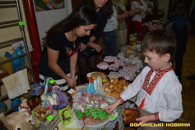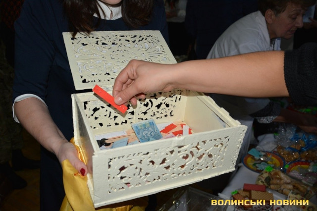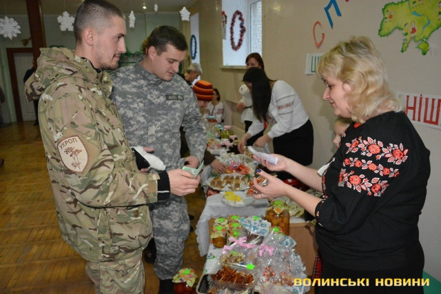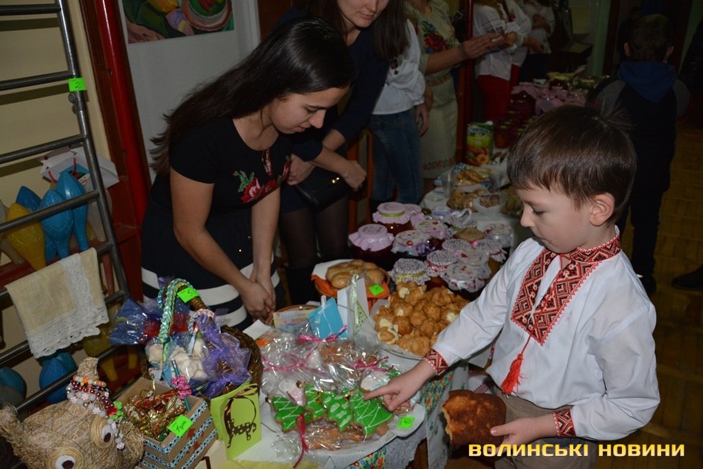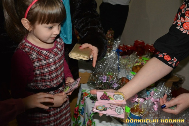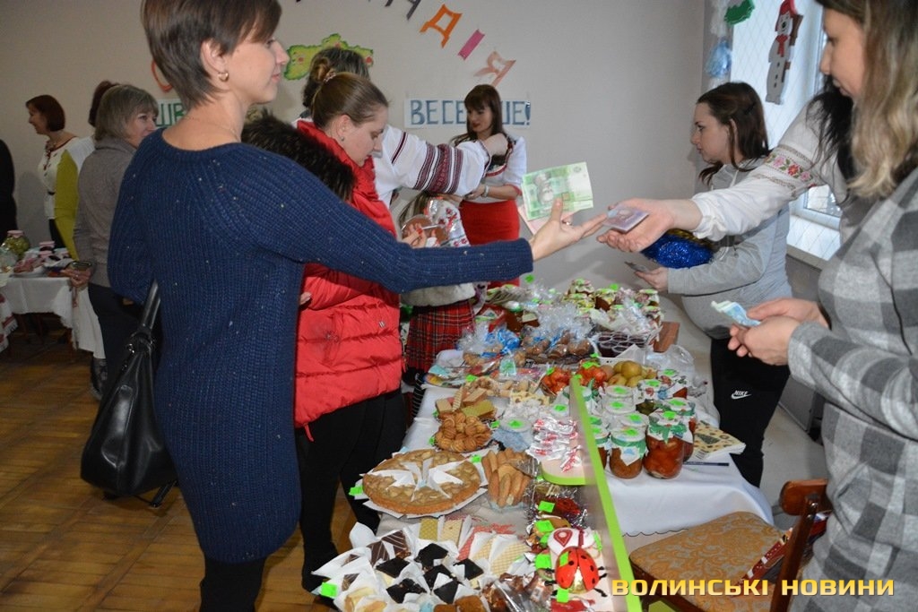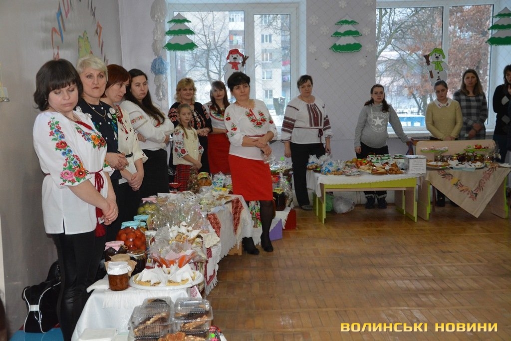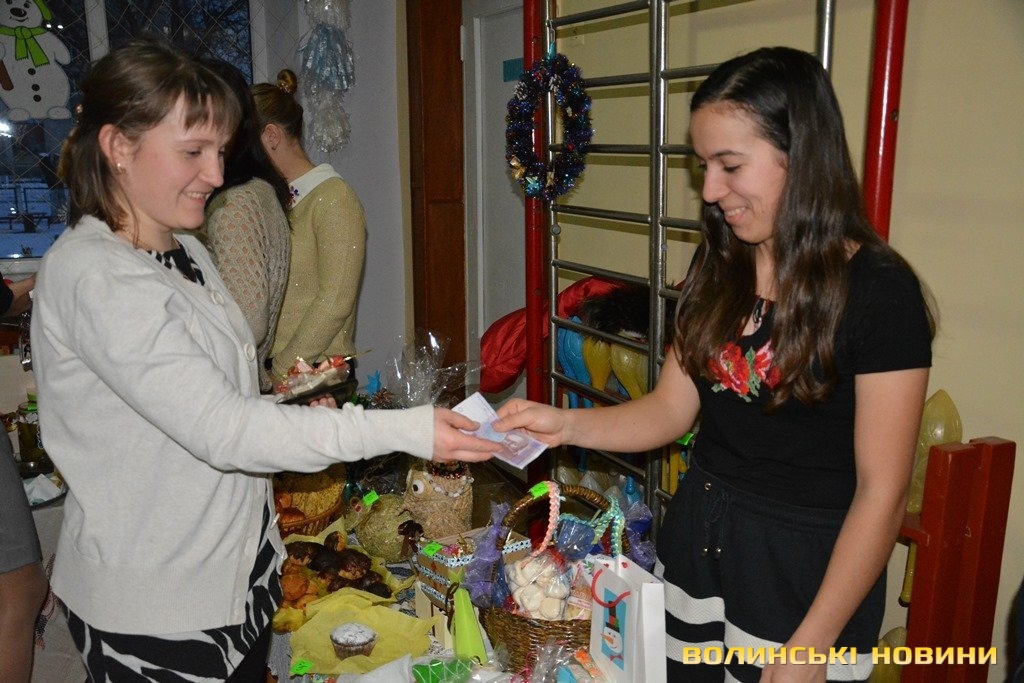 Як розповіла заступниця голови батьківського комітету однієї з груп ДНЗ Катерина Семенюк, її чоловіка мобілізували до лав Збройних сил України. Згодом, після демобілізації, він пішов на контрактну службу у ЗСУ. Тому жінка не з чуток знає, як непросто бійцям на передовій, як сумують вони за рідними, і наскільки для них важлива увага всіх, хто вболіває за рідну країну, прагне зберегти мир у своєму місті, захистити свою сім’ю.Бійці колишньої 51 бригади Павло Ковальський та Віталій Манченко теж були присутні на ярмарку. Як розповів Павло, він виховувався у цьому садочку, зараз у ньому працює вихователем його мама, а побратим Віталій прийшов підтримати усіх разом. Боєць каже, що є членом ГО «Спілка воїнів АТО Волині», яку очолює Олег Твердохліб.Він добре знає цього мужнього воїна і тішиться, що у нас є такі патріоти та фахівці військової справи. Він і його побратими, разом з волонтерами, підтримують нині Олега і бажають йому якнайшвидшого одужання.Завідувач дошкільного закладу Людмила Нагірна розповіла, що ініціатива підтримати бійця надійшла від батьківського комітету. Відтак, заздалегідь домовилися про збір необхідних речей, у тому числі і для діючих військових, тих, хто нині в окопах. Всі охочі батьки змогли приєднатися до цієї акції. Вони приносили теплі речі, засоби гігієни, медикаменти, консервації та різноманітні патріотичні листівки, щоб передати хлопцям на схід у переддень новорічно-різдвяних свят. А на ярмарок, з її слів, батьки приготували переважно смаколики, декоративні прикраси, вироби ручної роботи та інше.Окрім того, на заході розігрували безпрограшну лотерею. А ще була скринька для збору коштів від усіх тих, хто прагнув фінансово долучитися до збору допомоги для Олега Твердохліба.У підсумку, під час благодійного ярмарку вдалося зібрати 6 тисяч 285 гривень. Того ж дня бійці разом із волонтеркою ГО «Яворина» Русланою Вознюк, яка теж була присутня на заході, відвезли кошти додому бійцеві, якого саме на свято Миколая відпустили з лікарні.До слова, всього на післяопераційну реабілітацію та хіміотерапію для Олега Твердохліба необхідно зібрати 450 тисяч гривень.