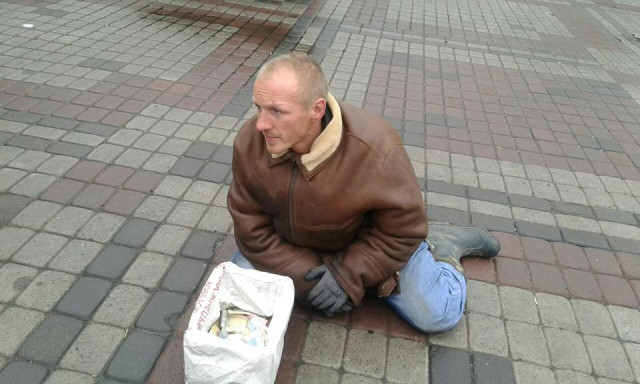 Інспектор вирішив допомогти людині з інвалідністю, адже на вулиці дощ, а чоловік сидів на мокрій бруківці в центрі міста. Однак той відмовився, сказавши, що не потребує допомоги, а милостиню просить, бо така у нього робота. Тоді муніципал вирішив викликати на місце події медиків, щоб вони оглянули кремезного чоловіка без ноги. Однак і цього разу чоловік відмовився і від цього.