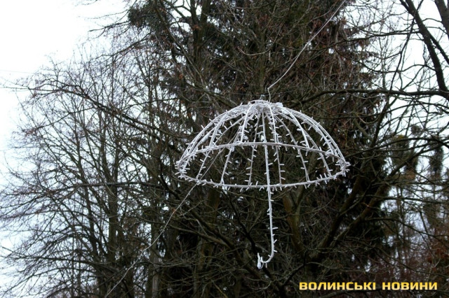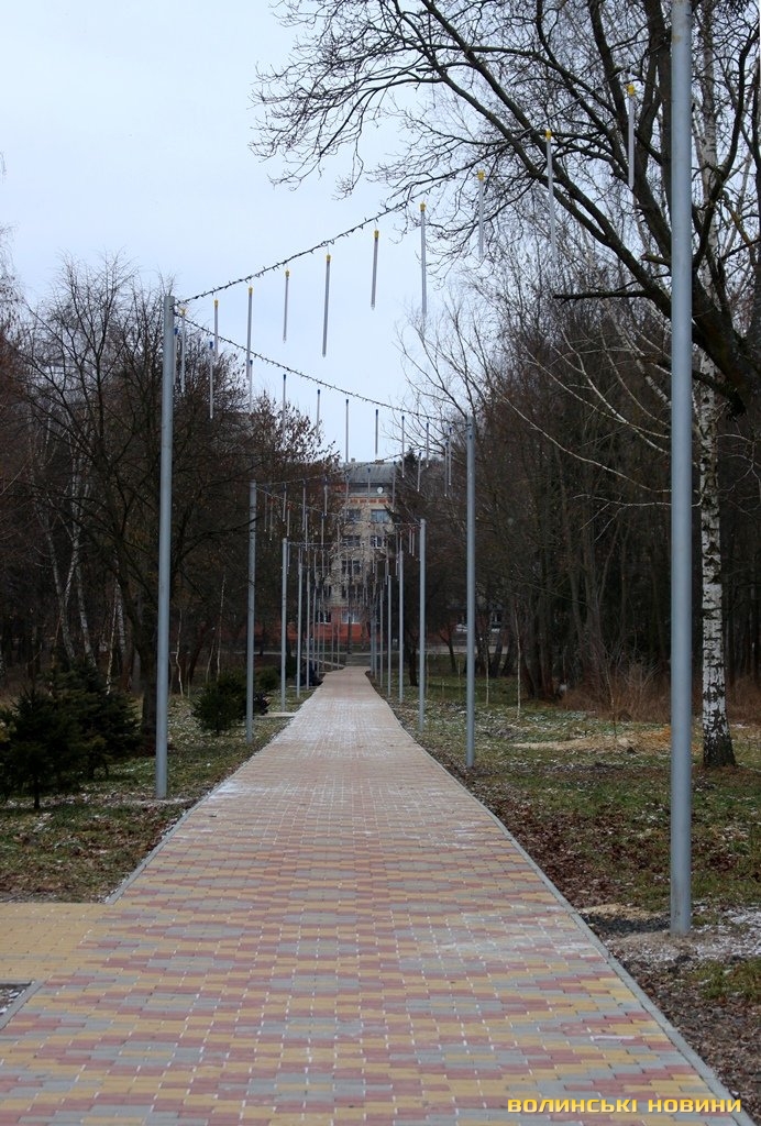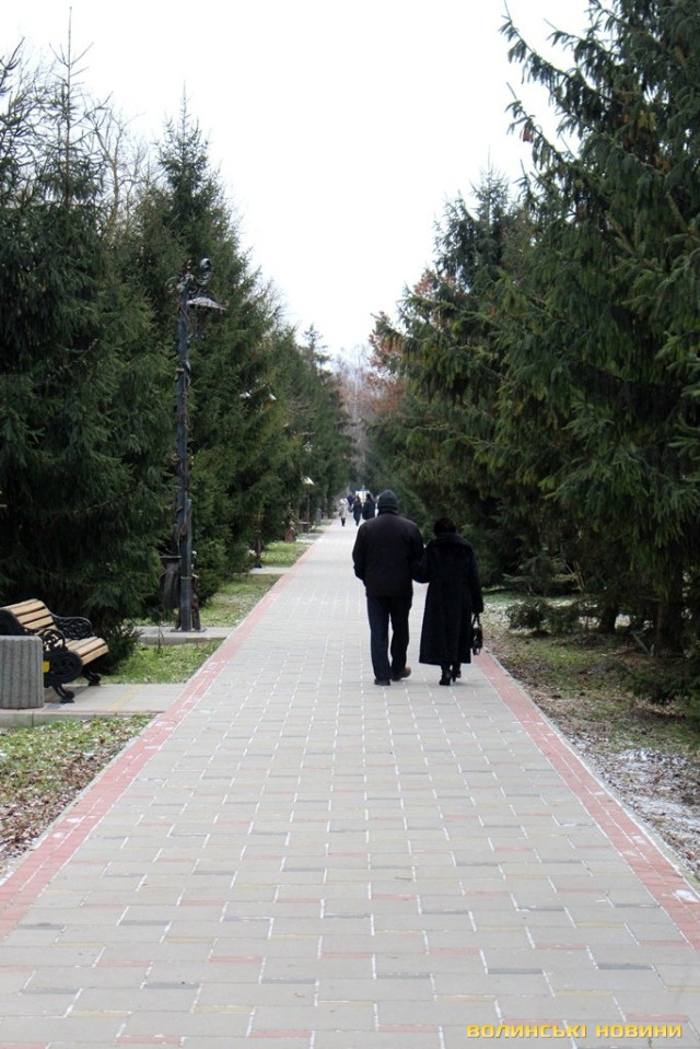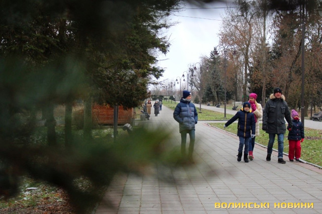 Цього святкового дня у центральному парку Луцька майже не має відвідувачів, лише окремі перехожі, які чи то поспішають кудись, чи то вийшли пройтись та подихати свіжим морозним повітрям.