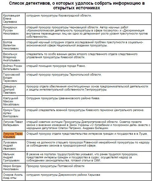 Список детективів, про які вдалося зібрати інформацію у відкритих джерелах, опублікував Главком: