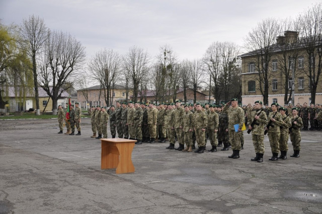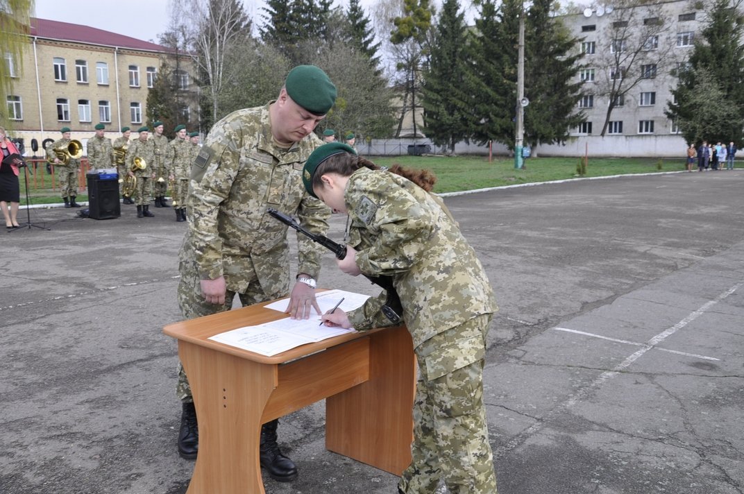 Урочисті заходи з нагоди складання військової присяги на вірність народові України прикордонниками, нещодавно прийнятими на військову службу за контрактом, відбулися сьогодні, 8 квітня 2016 року, в управлінні Луцького прикордонного загону.