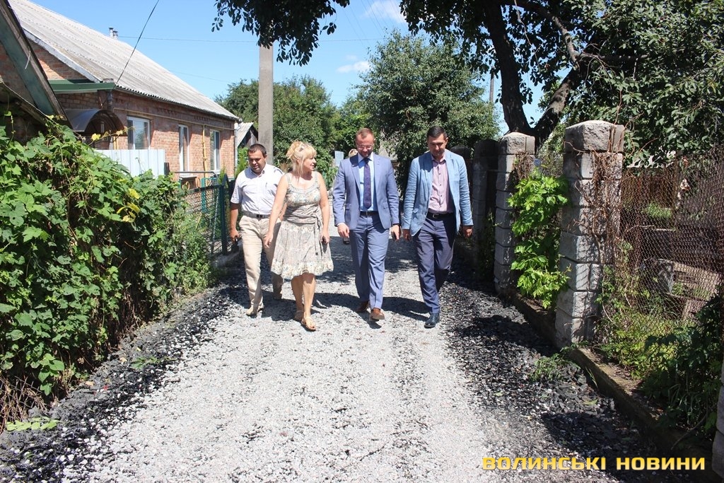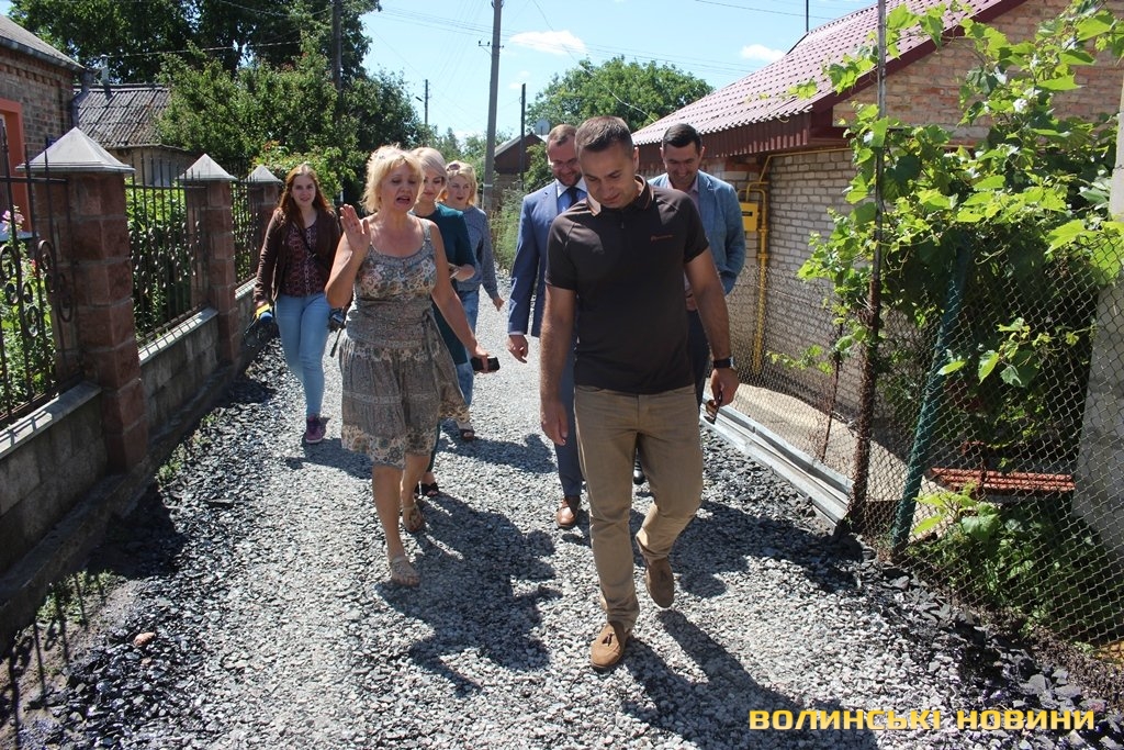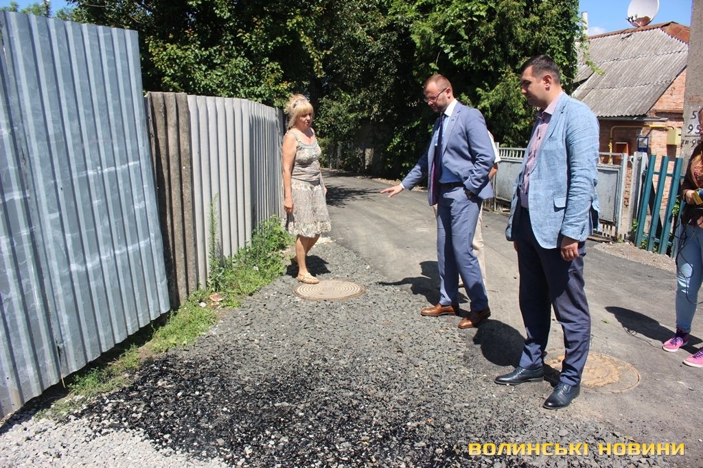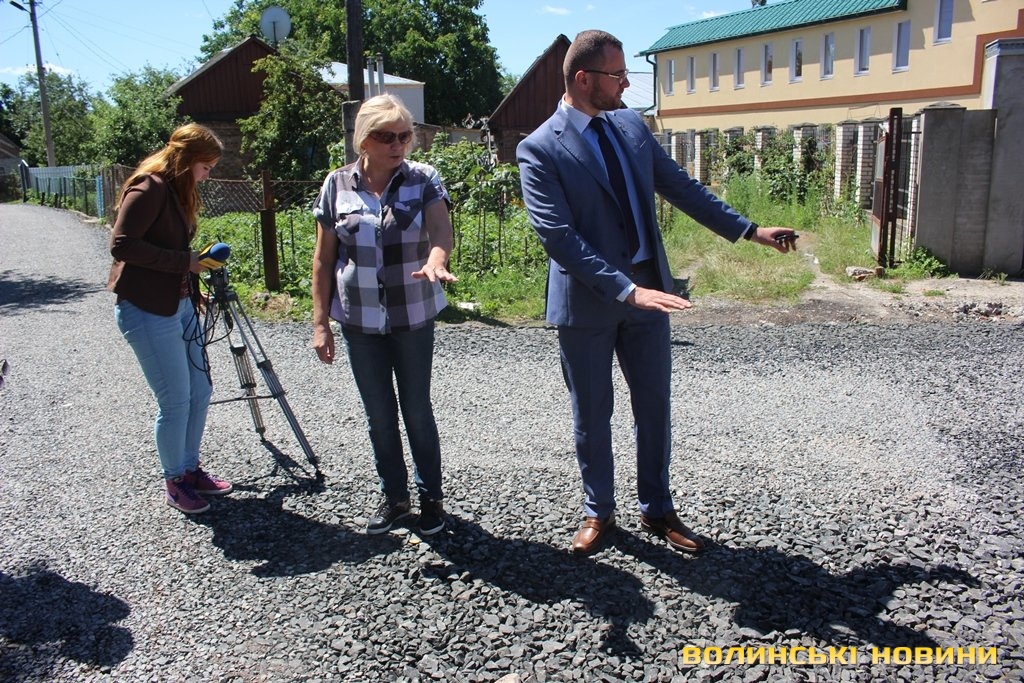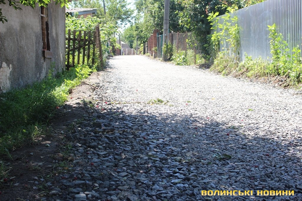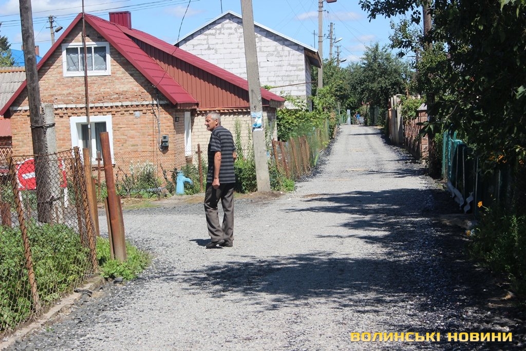 «Скільки разів ми просили й зверталися в ЖКГ, Луцьку міську раду, аби нам відремонтували дорогу – все було марно. Наша вулиця завжди була брудною, болото до колін, ями величезні, в дощ машини застрягали, були труднощі з приїздом швидкої. А діти, коли йшли до школи, то завжди виходили в чоботах, а потім перезувалися, адже по-іншому не пройти. Тепер ми - щасливі, бо нарешті можна взути туфлі й вийти у місто», - розповідає пані Тетяна.Ще оглянули сусідні вулички Гоголя та Волноваська. Тут завершують вкладати біло-щебеневе покриття з бітумним просоченням.