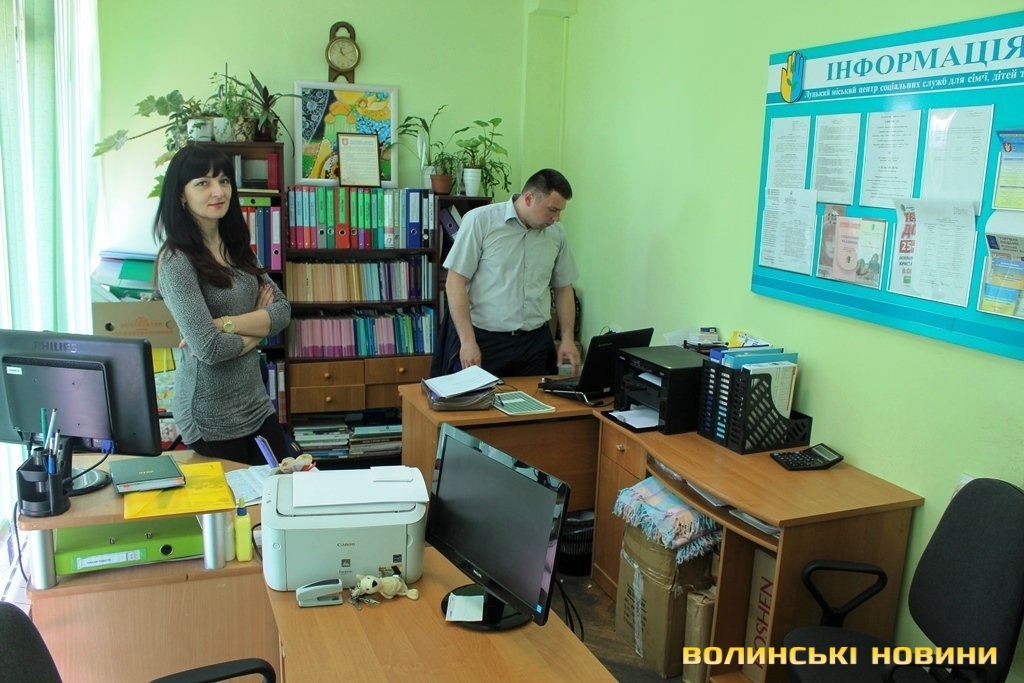 Зауважимо, що в міському відділі працюють 13 людей і 5 в обласному. Як побачили депутати, кабінети у них просторі, зокрема у луцького керівника.Принципово інша картина в центрі соціальних служб.