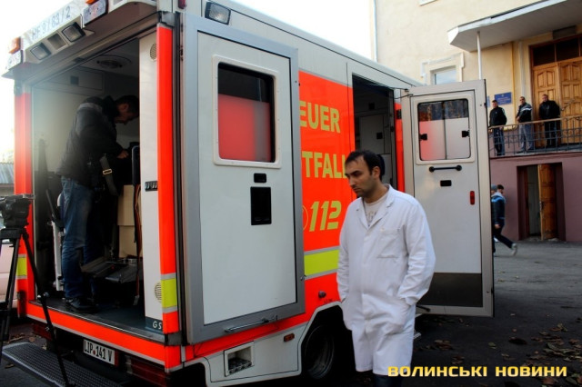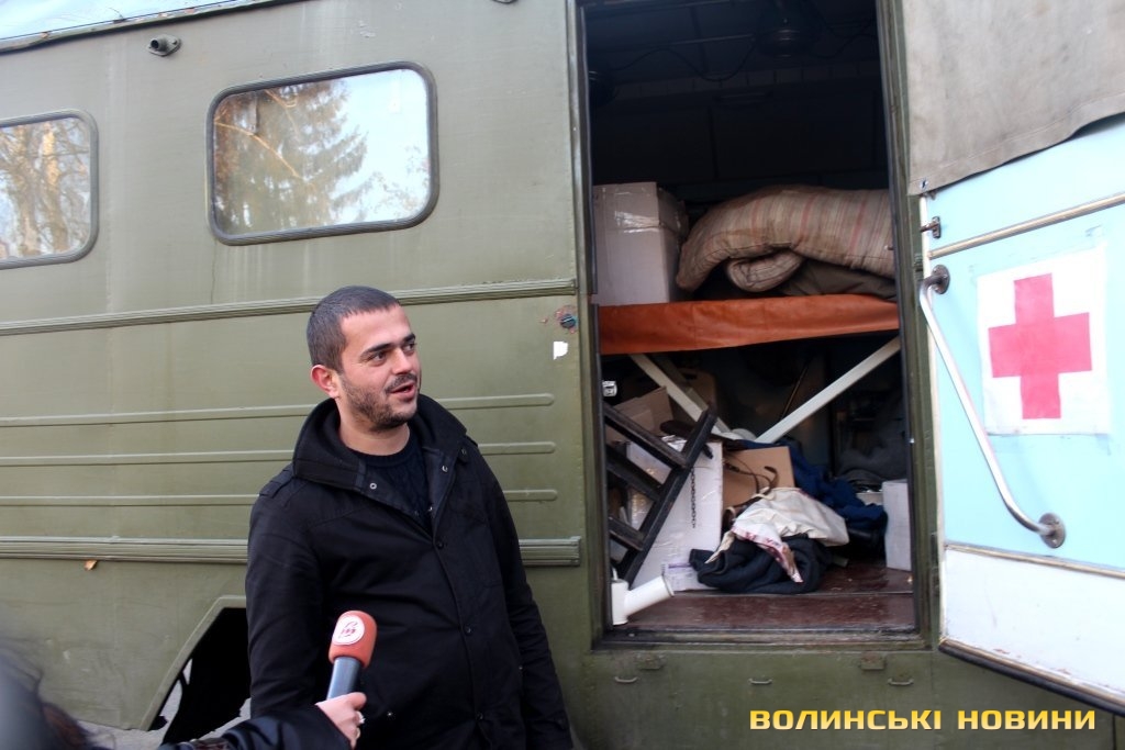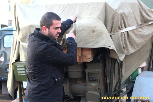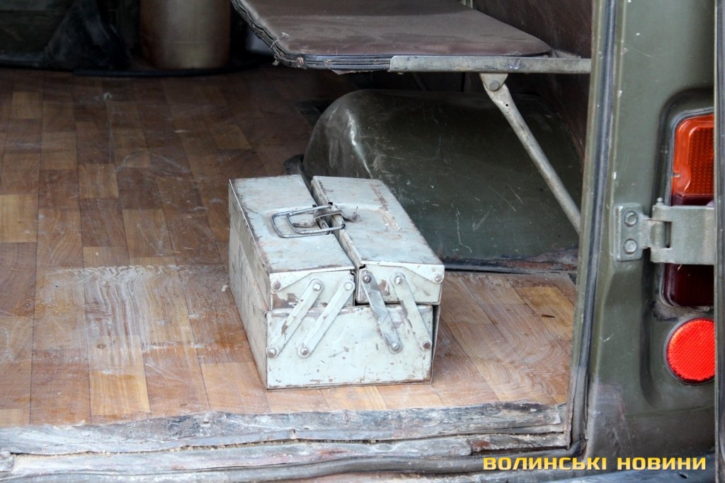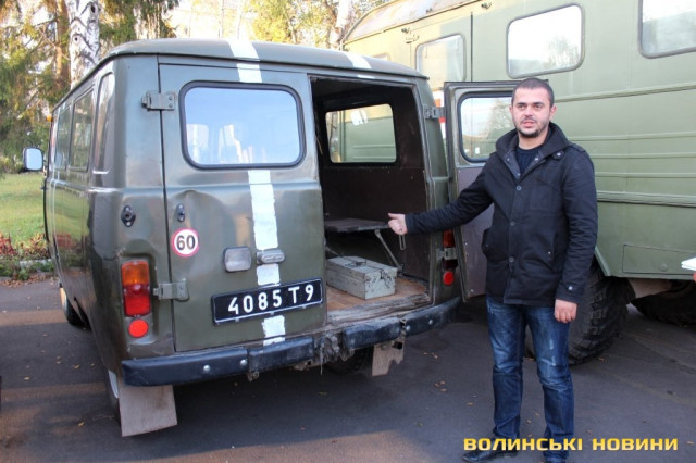 Він продемонстрував УАЗ, який використовували під час бойових дій. Повертатися на Схід, з його слів, доведеться на цьому ж старому автомобілі. Реанімобіль, який отримали з-за кордону, перебуватиме у Луцьку. УАЗ перевіз чимало поранених, подолавши понад 2 тисячі кілометрів у зоні АТО. Практично усі поранені, які перебувають на лікуванні у госпіталі, прибули у Луцьк на цьому автомобілі, який їздив у мобільний госпіталь.