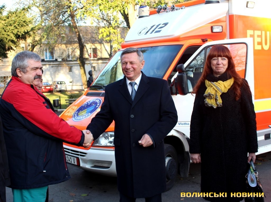 Міський голова Микола Романюк зазначив, що фінансування бюджетної сфери не дозволяє купувати нові реанімобілі. Коли ці автомобілі передали як гуманітарну допомогу від Німецької громадської організації «Мости дружби в Україну», було прийняте рішення передати один реанімобіль у Луцький гарнізонний військовий госпіталь, де лікується чимало поранених на Сході бійців. Він подякував медичному персоналу за те, що ставить на ноги військовослужбовців, які відстоюють незалежність нашої держави.